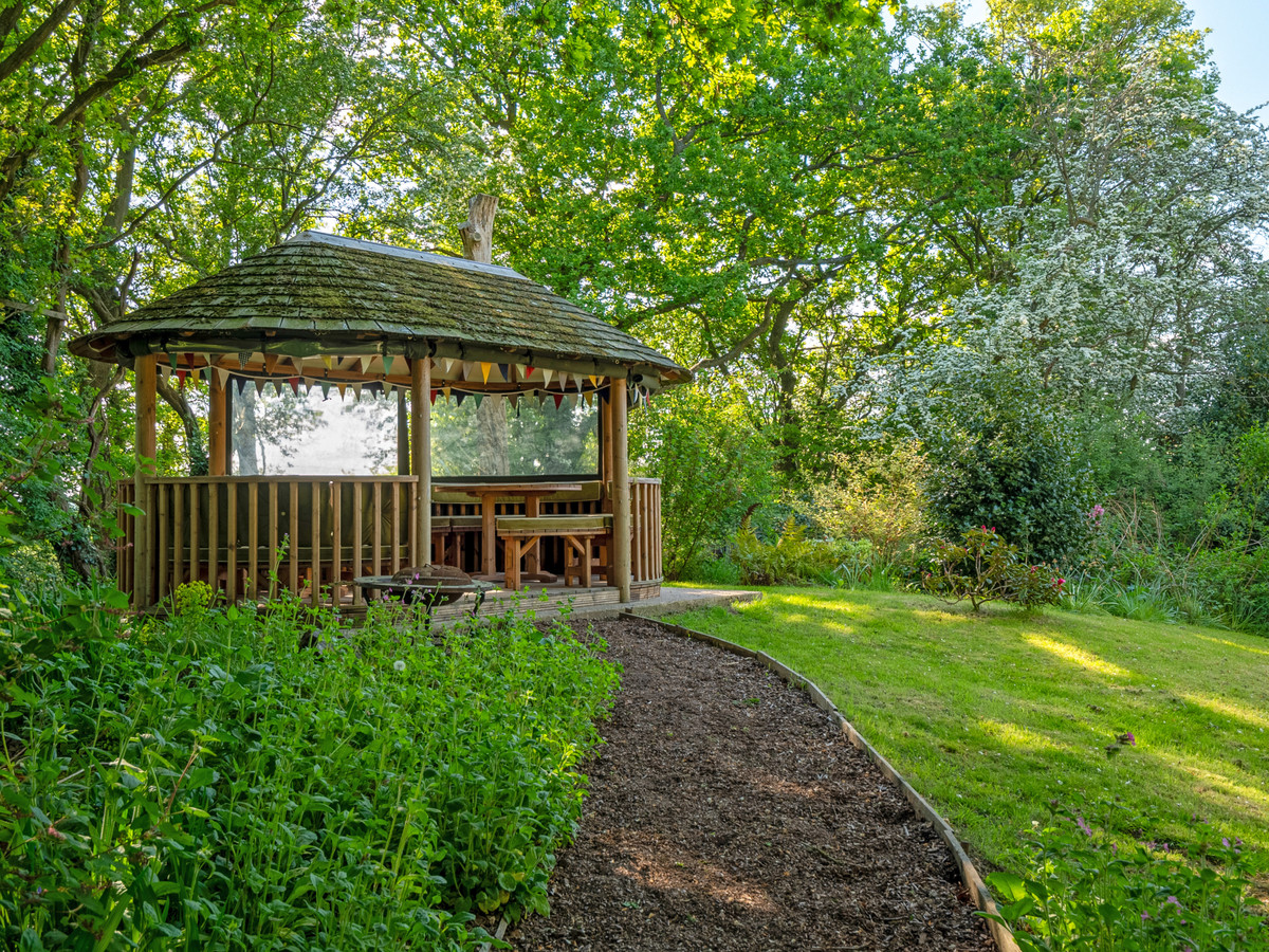 The property sits within circa two acres of mature grounds (stm) with many established trees, shrubs and flowering plants. Enjoying a southerly open aspect with countryside views there are various seating areas and paved patio with pergola, perfect for alfresco dining and entertaining. The lawned gardens have well stocked flower beds and include a fishpond, a vegetable plot with raised beds and a greenhouse. For those with children there is a large timber breeze house that is ideal to watch the children play on the adventure play area with tree house which extends into woodland.
