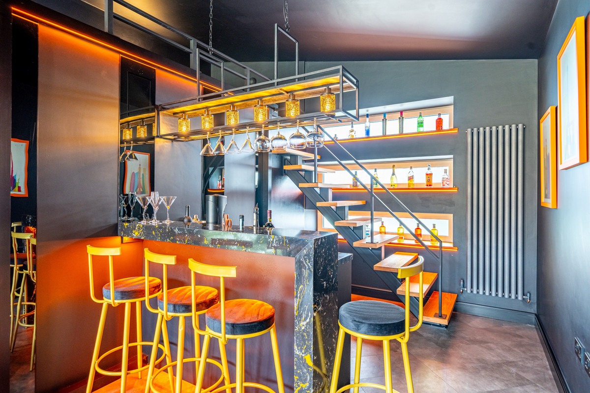 The real surprise to the ground floor is the impressive games room located at the end of the hallway. This incredible space with high ceilings and a bar with wine cooler has bi-fold doors leading out onto the decking area making this a great space for entertaining. This incredibly versatile space also boasts a hot and cold shower, a sauna room with premium alder wood cladding and for those seeking full spa facilities the reinforced foundations already in place under the games, could be utilised to create a wonderful indoor swimming pool.