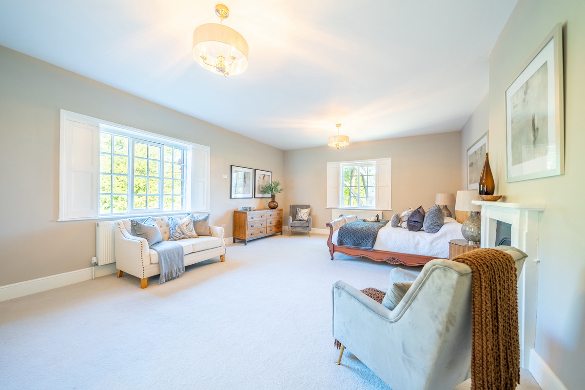 The principal bedroom suite is impressively spacious, elegant, and refined and includes a notably sized dressing room with an abundance of fitted wardrobes. A further doorway leads into a luxurious ensuite bathroom complete with a freestanding bath and a double walk-in shower.