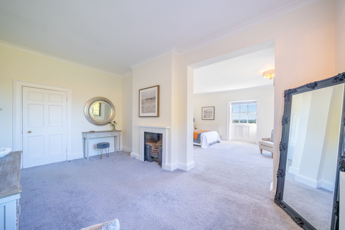 The upstairs accommodation consists of five light and airy double bedrooms with high ceilings and many original features. All rooms feature sliding sash windows and offer breathtaking views of the countryside from every angle.