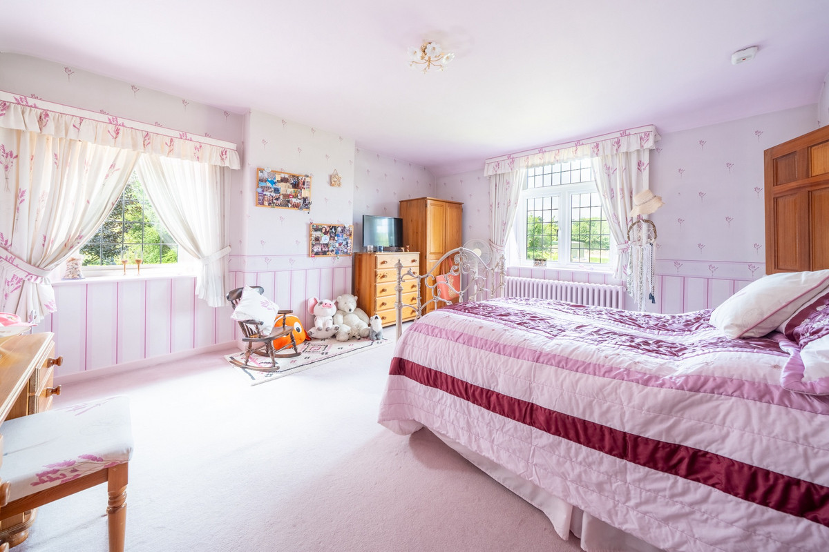 Each additional bedroom has its own unique charm, with character features including cast iron radiators, leaded windows with deep oak sills, and lofty ceilings. A second opulent family bathroom serves these rooms, similarly appointed with a roll-top bath, separate shower, and exquisite period detailing.
