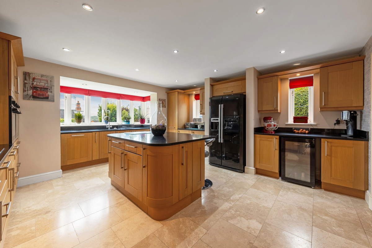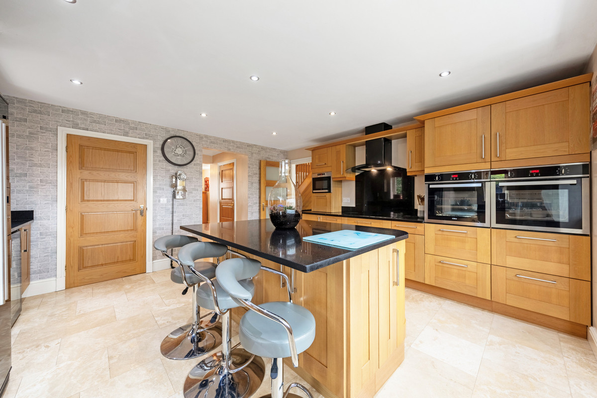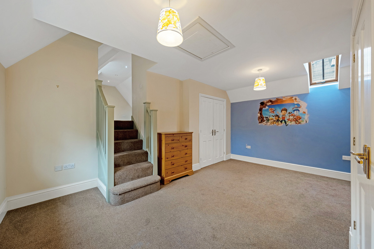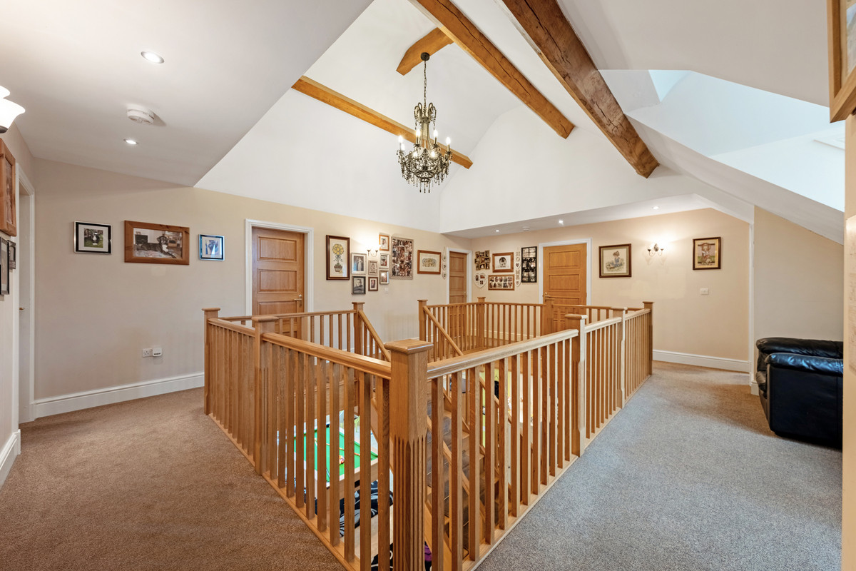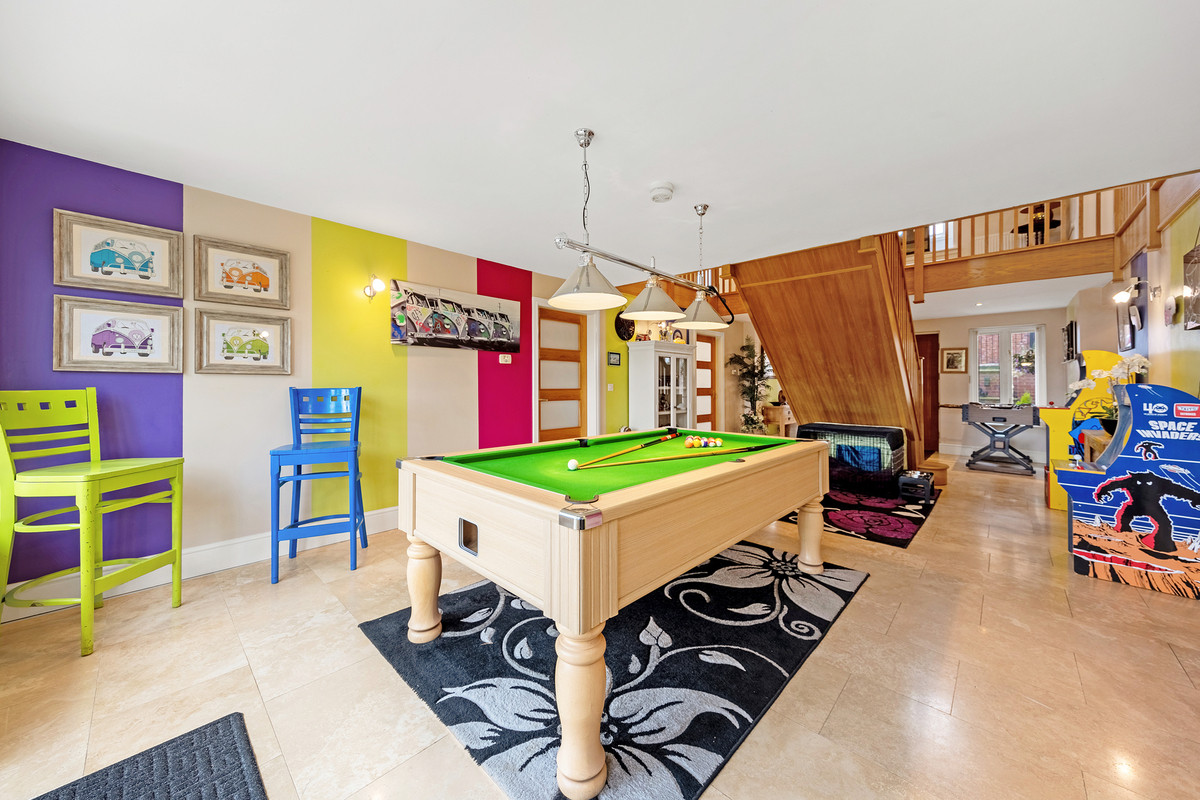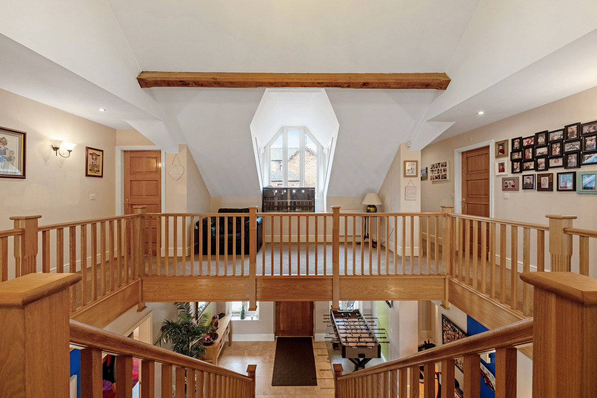 On the ground floor there is plenty of space for those with a large family to find somewhere to unwind or hide away from family life. This includes two large reception rooms both of which have log burners, a large office that could also be used as a playroom, and a formal dining room. The ground floor also benefits from plenty of storage cupboards, underfloor heating and a w/c.