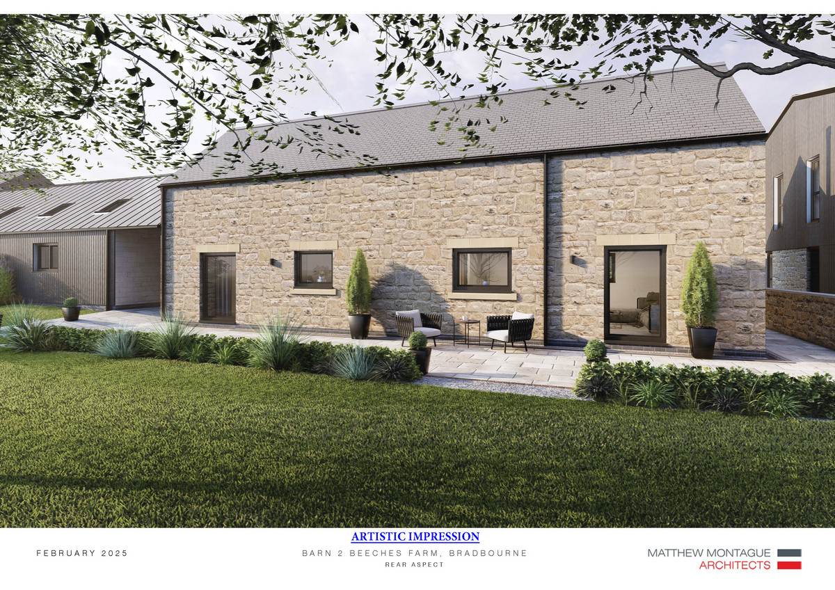 Set amidst the rolling Derbyshire countryside, the proposed farmhouse-style property is an architectural masterpiece, blending traditional elegance with modern sophistication. The design features expansive living spaces, four en-suite bedrooms( 1 on the ground floor), modern open reception rooms. A double garage ensures ample space for vehicles, while the sweeping driveway adds to the estate’s grandeur.