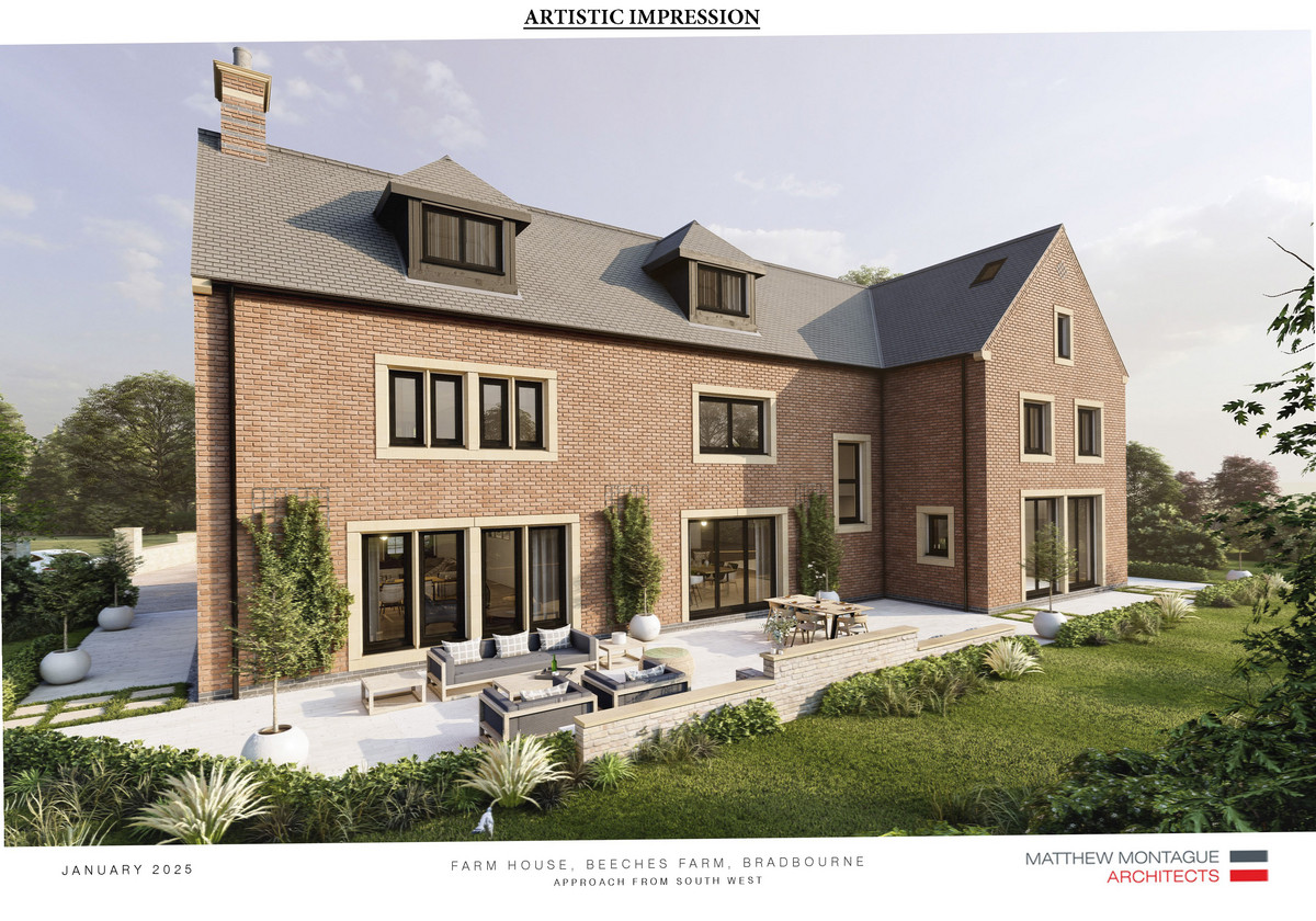 A once-in-a-lifetime opportunity to build your dream home on a breathtaking plot at The Beeches, Brassington Road, Bradbourne, Ashbourne. This exclusive land approx 1.5 acres comes with approved planning permission for a stunning 7,000 sq. ft. luxury residence, with further 2000 sqft of garaging and accommodation above, designed by renowned local architect Matthew Montague. With a possible option to purchase further land up 16 acres.