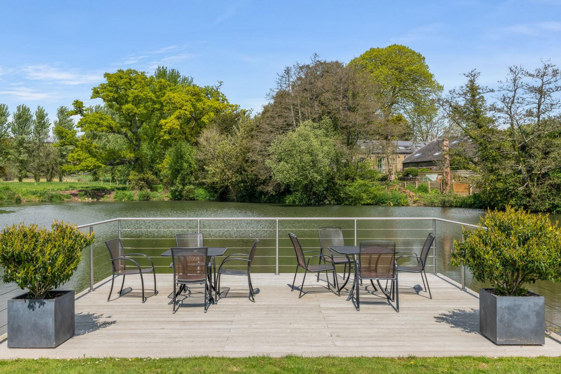 The adjacent living and dining room is the heart of the home — a space designed for both relaxation and entertaining. Flooded with natural light from its double-aspect windows, the room enjoys sweeping views over the estate’s parkland and serene lake. A charming window seat invites you to pause and take it all in — the perfect place for a morning coffee, a good book, or simply watching the seasons unfold across the landscape.