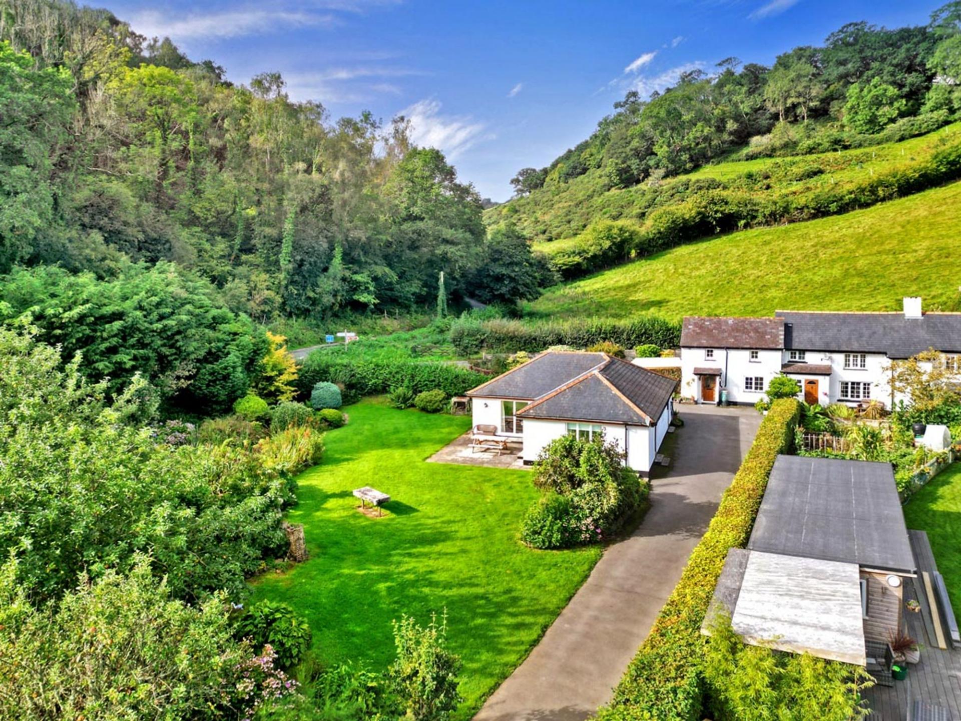 Set within the breathtaking Teign Valley, this remarkable dual entrance estate offers an unparalleled opportunity for multigenerational living or investment potential. The property consists of two distinctive residences: a beautifully extended semi-detached grade II listed cottage brimming with character and charm, and a spacious, detached bungalow offering modern comforts and privacy. The thoughtful layout ensures both homes are perfectly positioned to offer independent living, while still being part of the same expansive estate. With over five acres of land, charming stables, a detached barn, a sizeable store shed, a tractor shed and paddocks, with the Teign River running along the lower boundary. This is a rare opportunity to create a unique family compound, or to explore the potential for income-generating ventures, all within the tranquil surroundings of the Teign Valley.