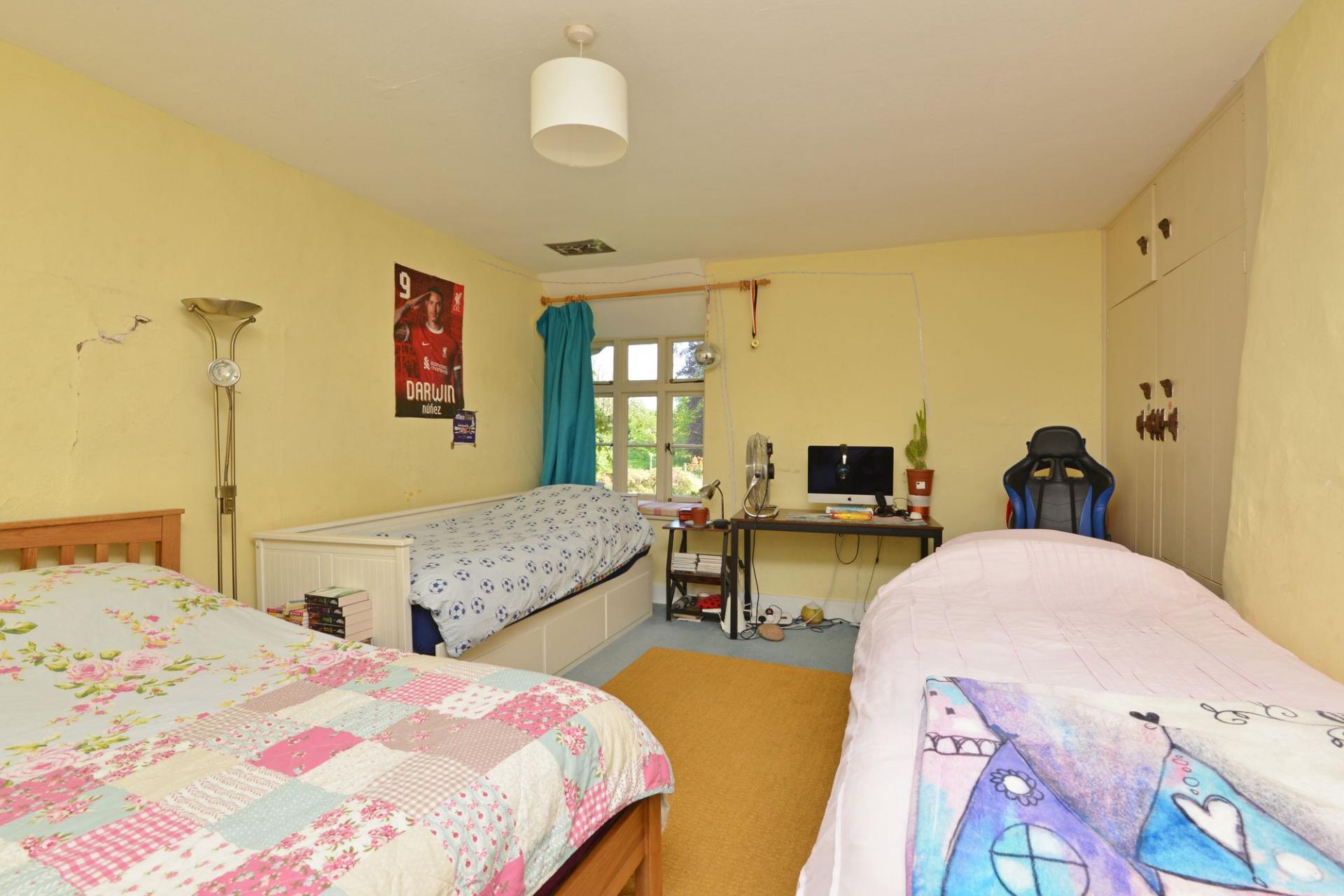 Bedrooms two and three, in the original part of the house, are generous doubles, while bedrooms four, five, and six all enjoy countryside views. A modern shower room completes the accommodation.