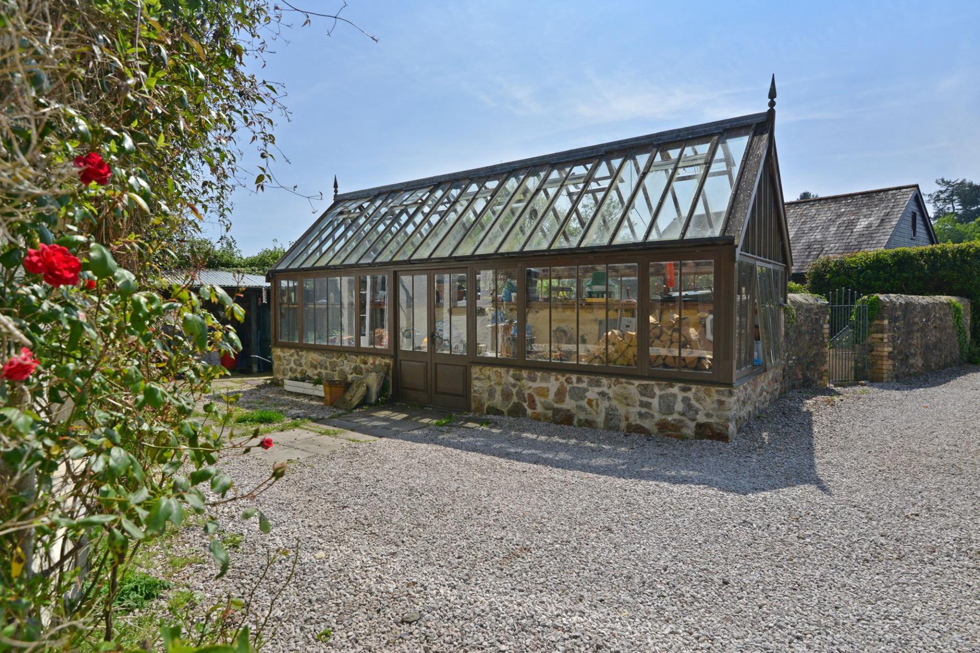 Set in just over 3 acres, the grounds are as enchanting as the house itself, with formal gardens, orchards, and woodland to explore. A range of outbuildings adds further appeal, including a detached barn with store and hayloft, a large greenhouse, a two-storey barn, and an additional barn—ideal for a variety of uses.