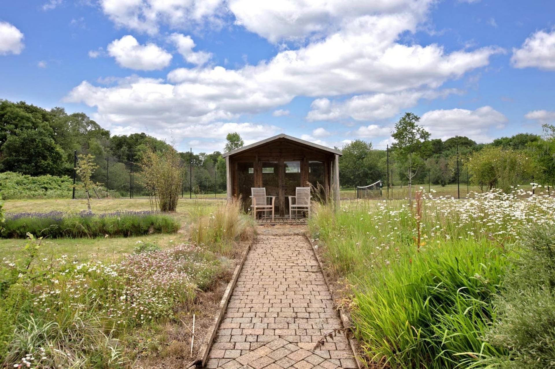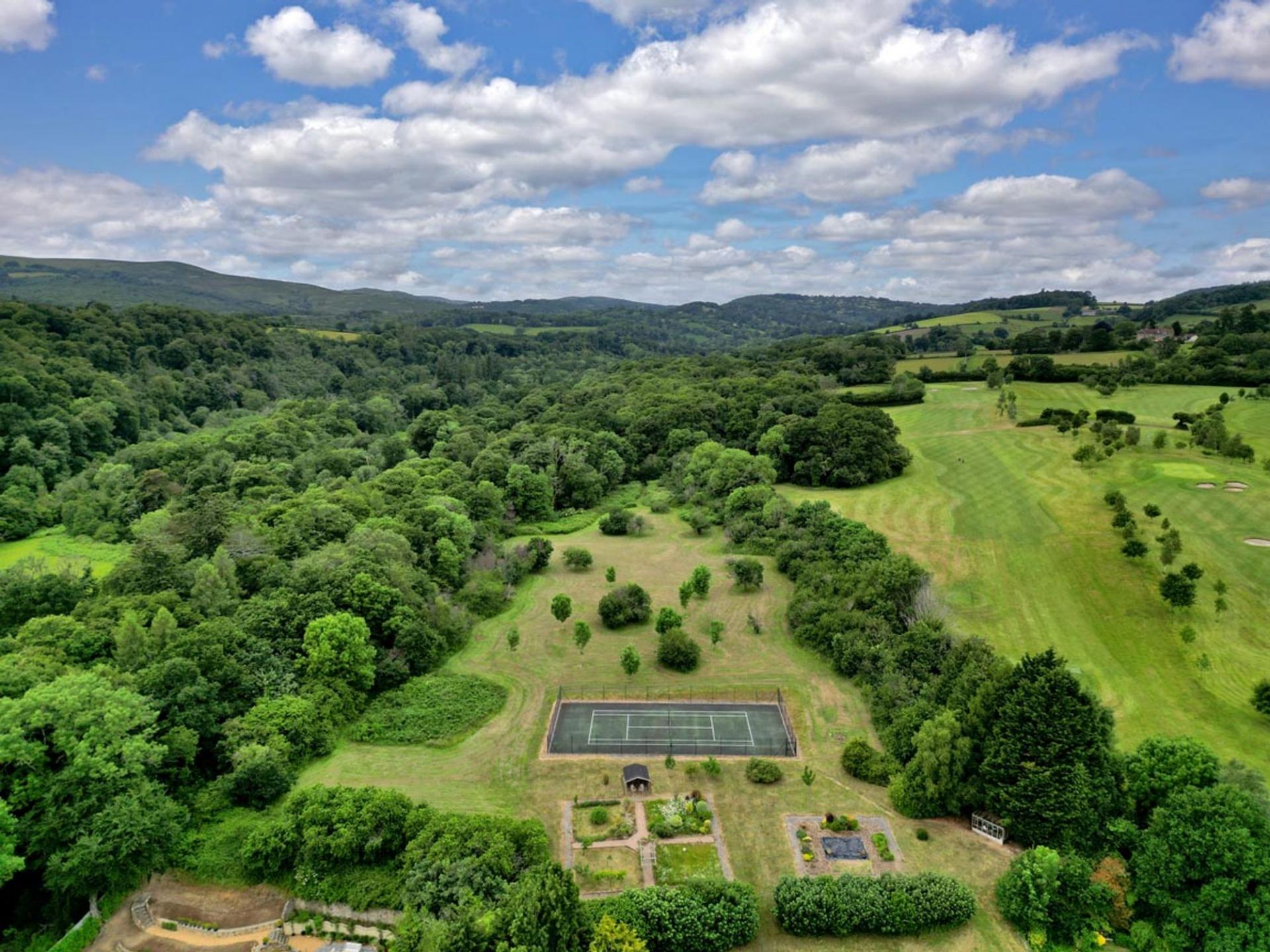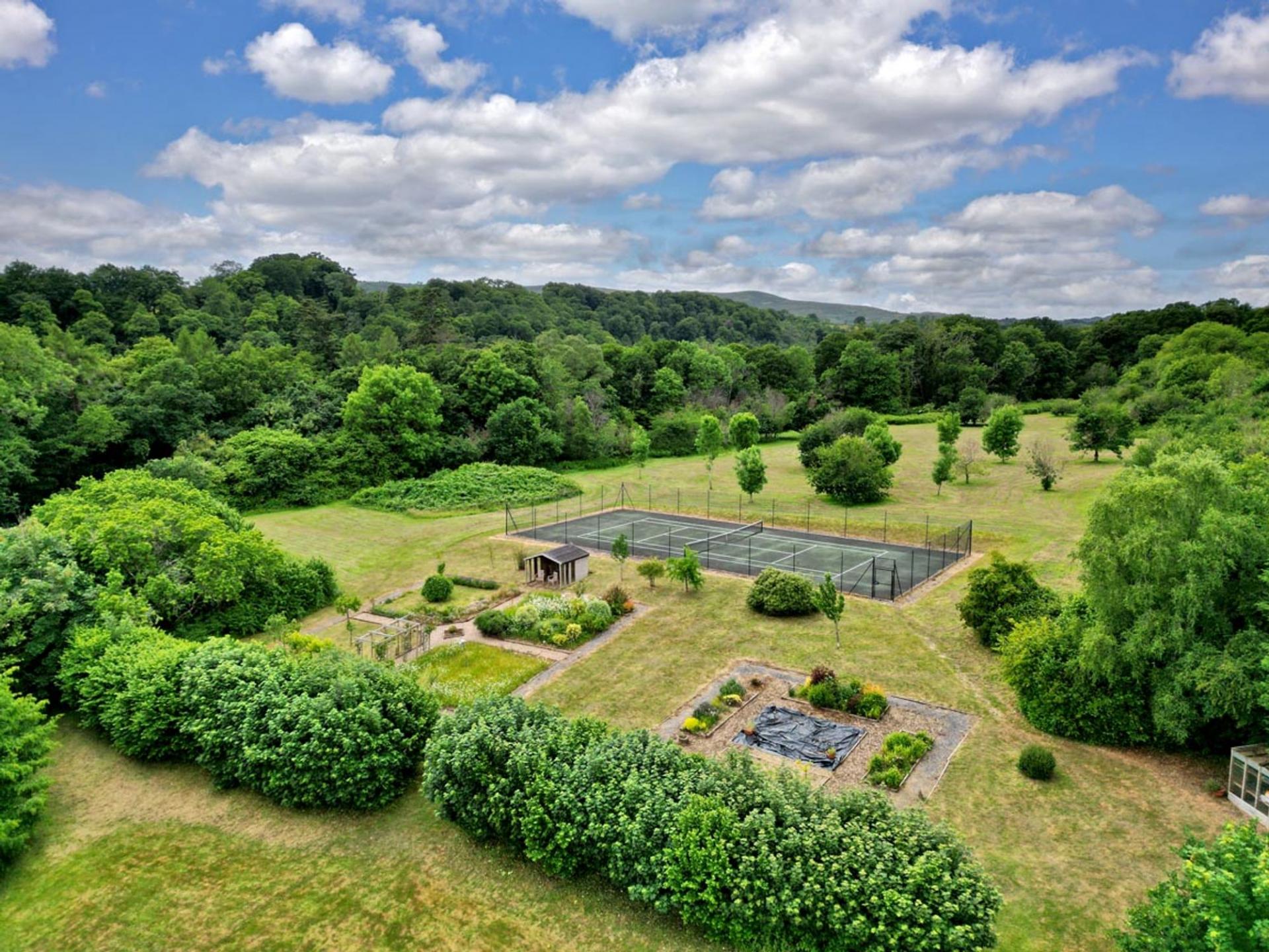 There is a large greenhouse with power for budding gardeners and a full-size tennis court invites recreation. Hidden amongst the trees, a small bridge leads over a meandering stream, offering yet another magical feature of this extraordinary setting. The far boundary opens into the National Trust’s Parke estate, granting easy access to woodland walks and wide open spaces.