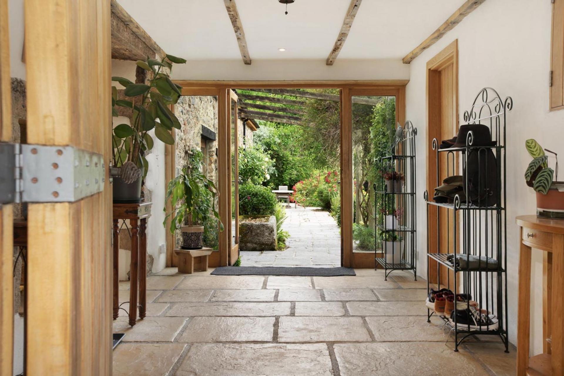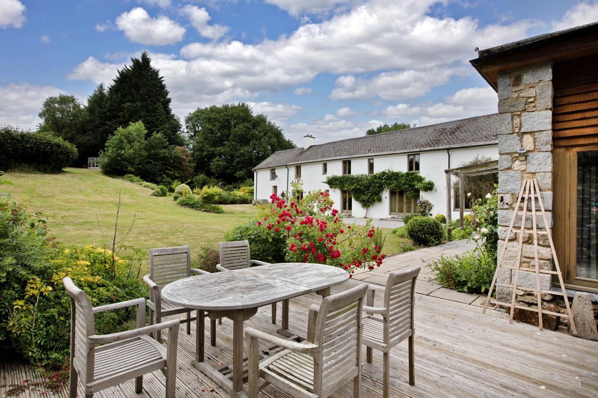 Manicured lawns extend from the property, with a gentle slope that rises beyond the house, edged by mature hedging and offering elevated views over the Dartmoor countryside. A wildflower garden bursts into colour through the seasons, while a path beneath a charming pergola leads to variety of areas ideal for home produce and a secluded summer house—perfect for quiet reflection or evening drinks at sunset.