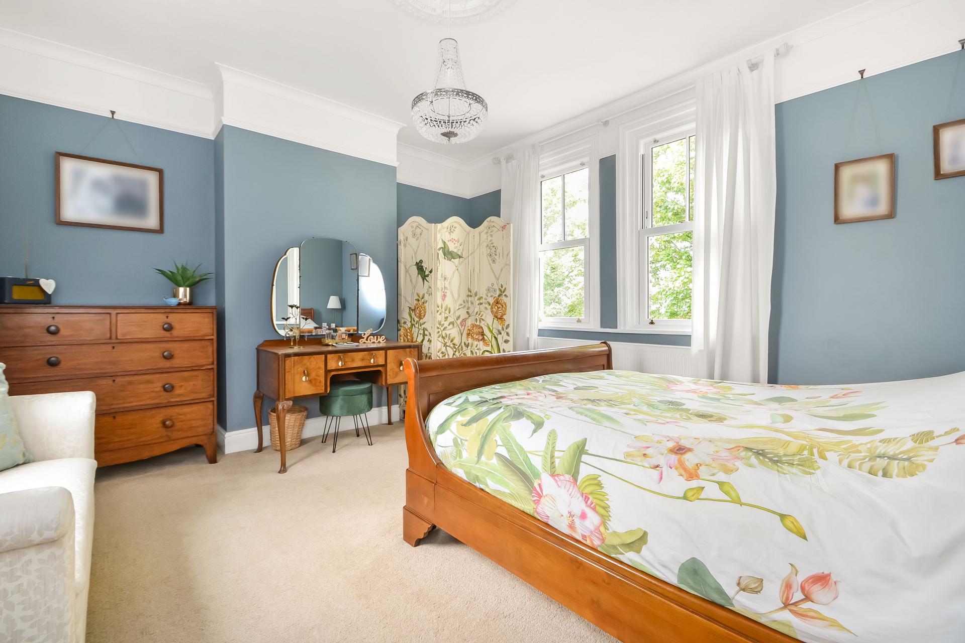 BEDROOM 1 14' 1" x 12' 2" (4.29m x 3.71m) Double glazed sash window to side aspect with views at an angle towards Langstone Harbour, ceiling coving, picture rail, twin sash windows to side aspect overlooking garden and Drayton Lane, radiator.