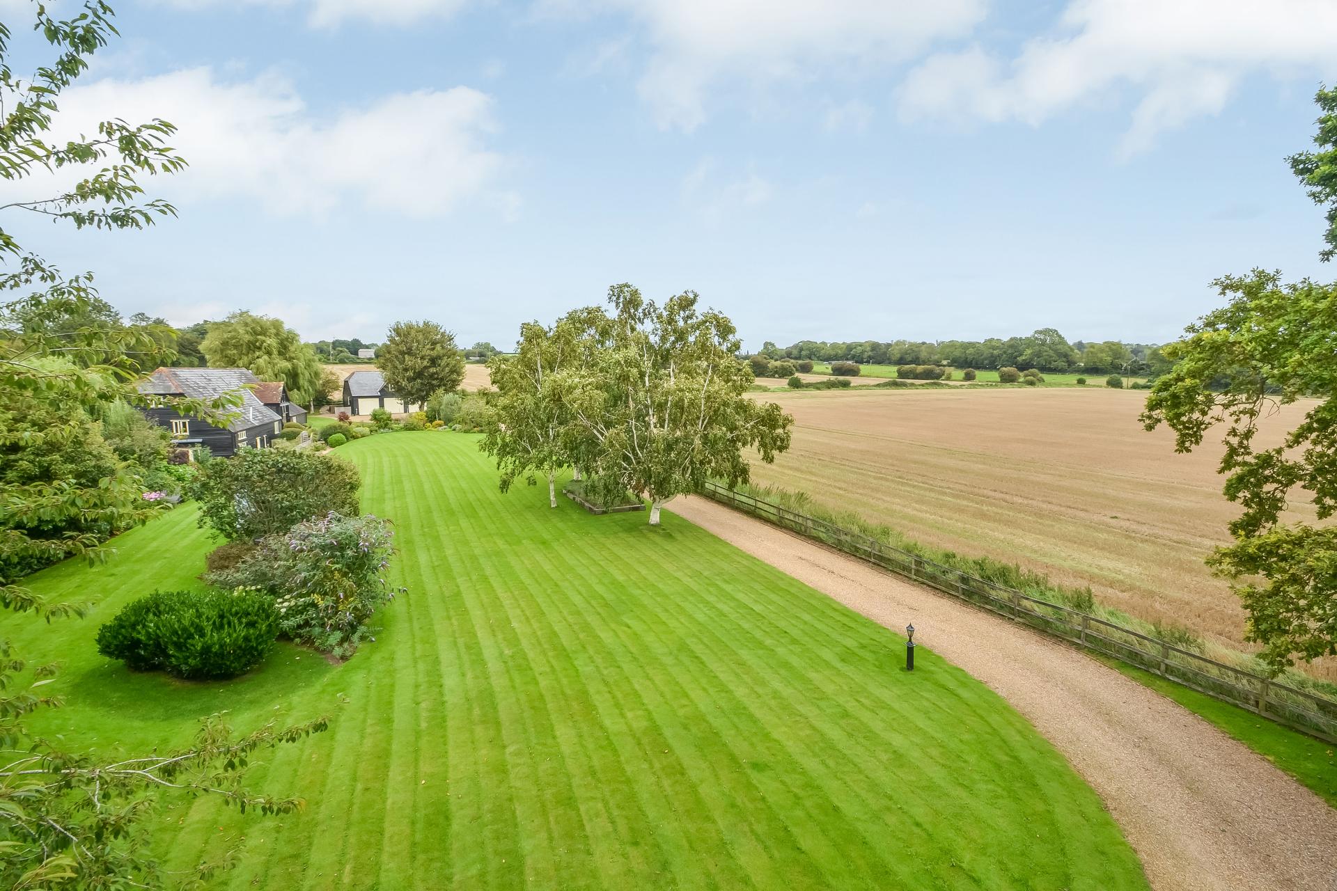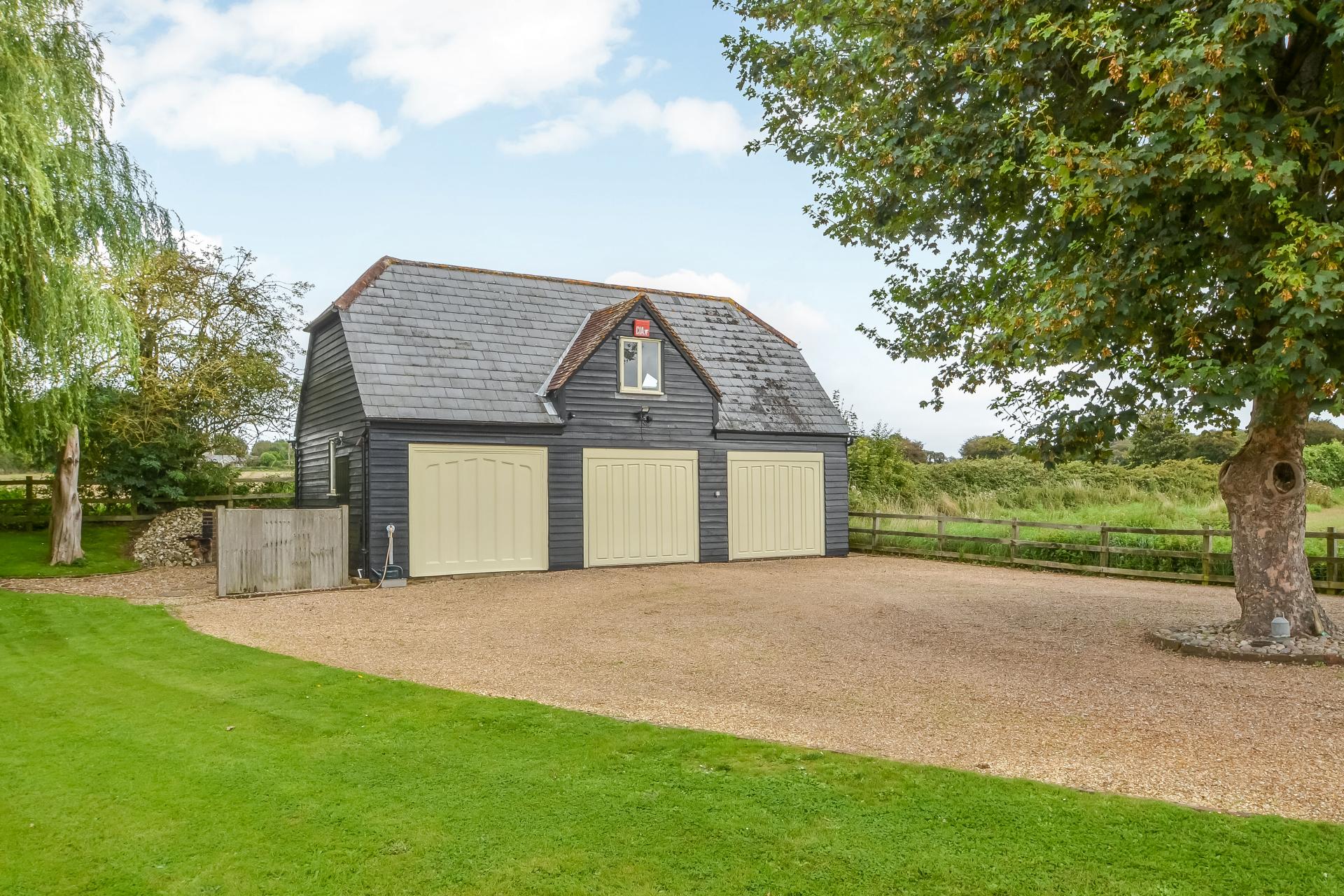 PROPERTY SUMMARY Nobles Barn was re-built approximately 30 years ago in the style of the former barn with the primary vaulted ceiling sitting room accommodating the northern wing and the three-storey living accommodation to the southern wing. It has an abundance of character with wood cladding and a high-pitched slate roof and is of extensive architectural interest. The property has 4516 sq ft of living space including a detached garage/studio and large workshop. Set in a hamlet where development is rare, this is truly a property not to be missed. The interior of the barn has been designed with modern life very much in the forefront, it is beautiful with many exposed beams, a vaulted ceiling galleried landing, wooden staircases and supporting beams. Although there are large open internal spaces the barn is warm and airy, as the honey colouring of the oak timbers provides a welcome and natural feel, the main windows in the living room fill the space created from the removal of the original barn doors. The beautiful kitchen has an open plan layout leading onto a terrace for al-fresco dining, the barn has been sensitively designed and is a great place for family to gather, the high ceilings and windows have twin doors which lead to a rear garden. The plot itself extends 0.9 of an acre which includes an L shaped sweeping driveway and extensive car parking facilities with a double garage which has separate occasional living space over which could be used as studio or ideal for those wishing to work from home.