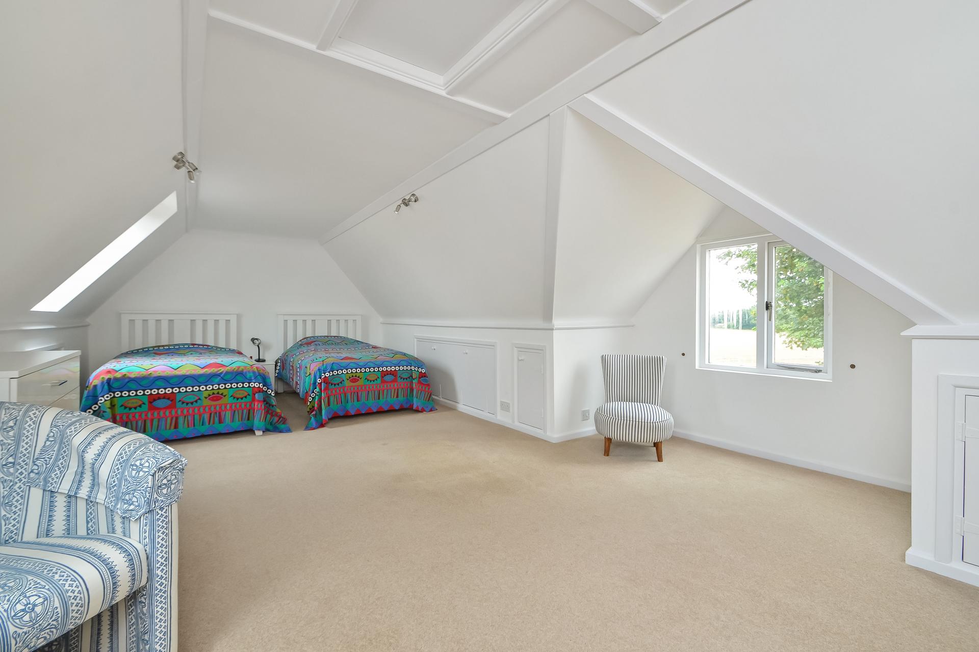 STUDIO / OCCASSIONAL BEDROOM 32' 4" x 14' 2" (9.86m x 4.32m) Measurements into front dormer window overlooking farmland and driveway, twin Velux skylight windows to rear aspect overlooking farmland, access to low level storage eaves, with eaves to front and side ceiling restricting headroom, ceiling spotlights, access to loft space.