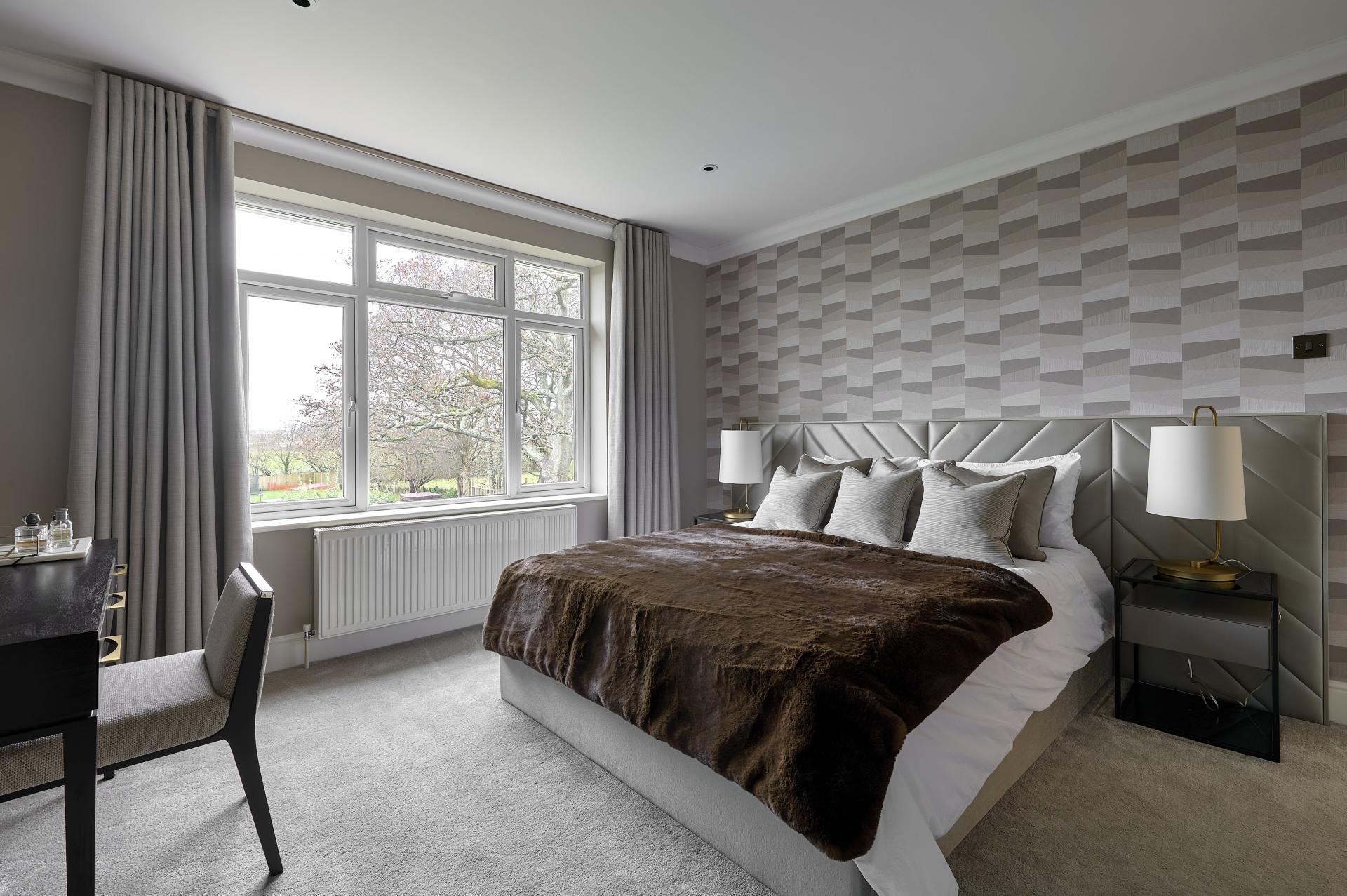 BEDROOM 1 19' 4" x 17' 2" (5.89m x 5.23m) Twin double glazed doors with windows to either side leading to balcony with far reaching views over garden towards woodland and farmland beyond, two roll top radiators, zoned lighting and dimmer switches, ceiling spotlights and coving, bracket and wiring for wall mounted T.V., door to: