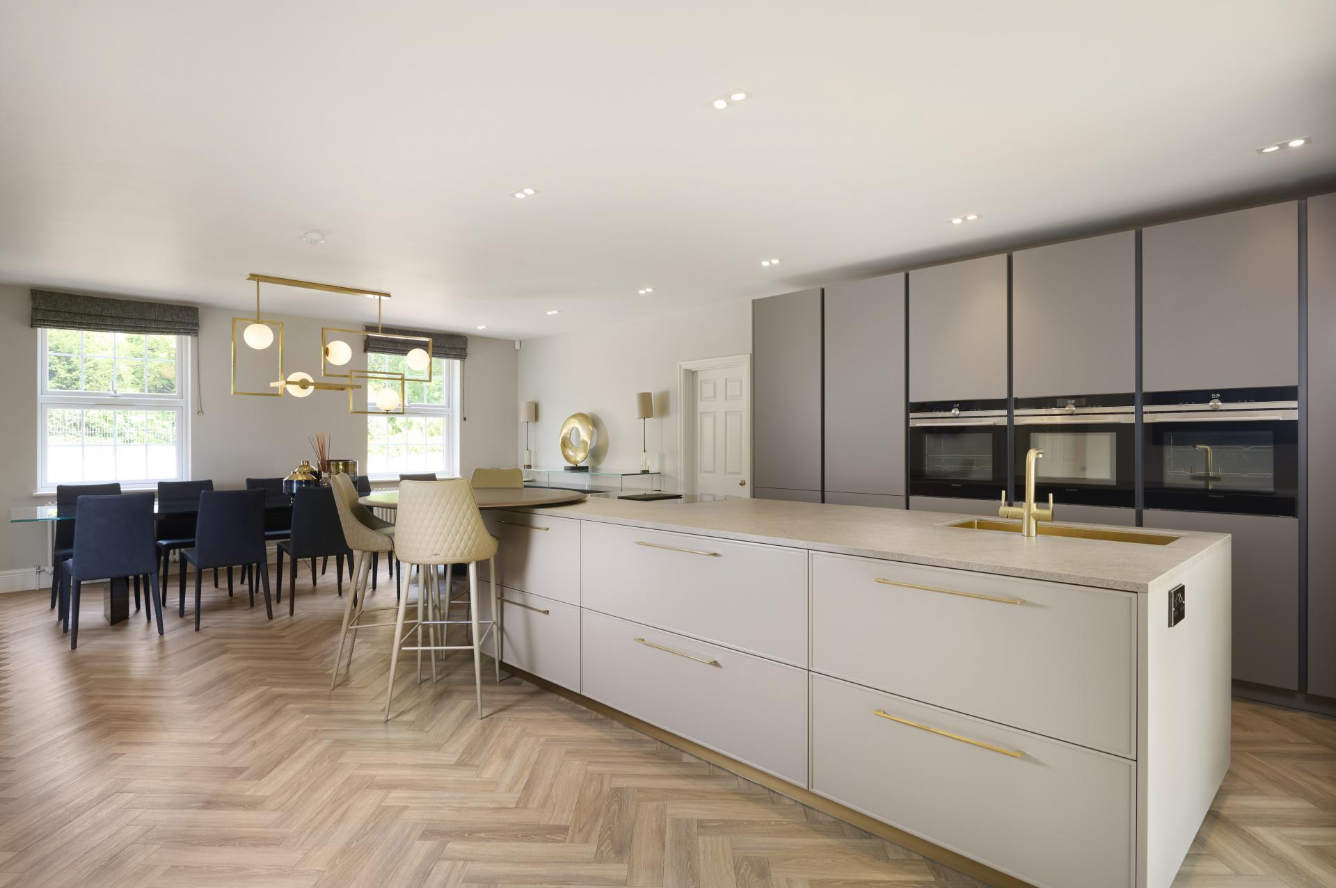 KITCHEN / DINING ROOM 27' 0" x 19' 3" (8.23m x 5.87m) Dining area: LVT flooring, twin double glazed sash windows to front aspect overlooking driveway with roll top radiator under, zoned ceiling spotlights, over table light, door to inner lobby.