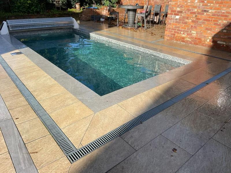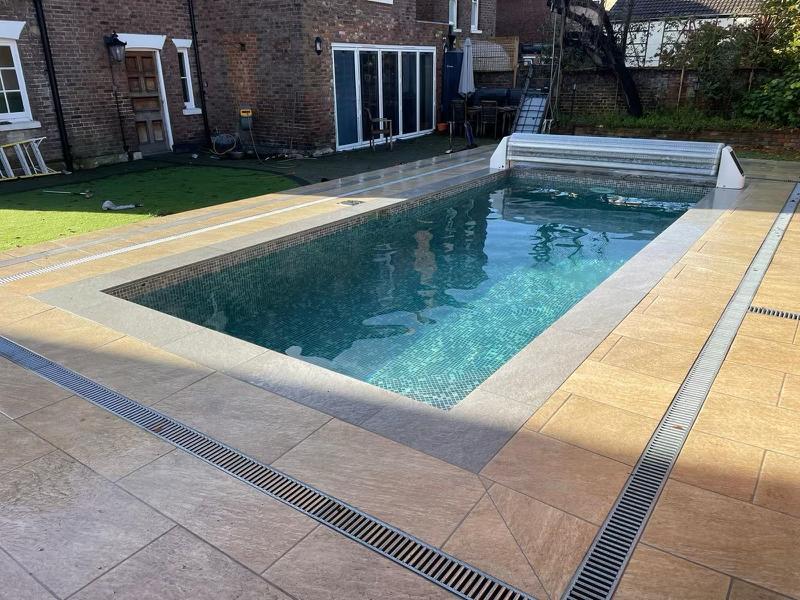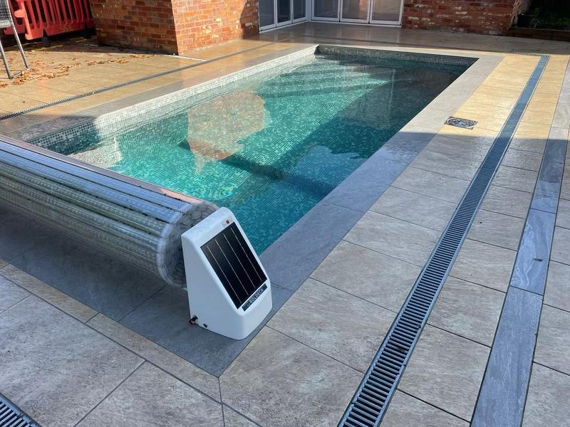 SUNKEN SWIMMING POOL Remote control shutter cover. To the rear of the swimming pool is a pump room