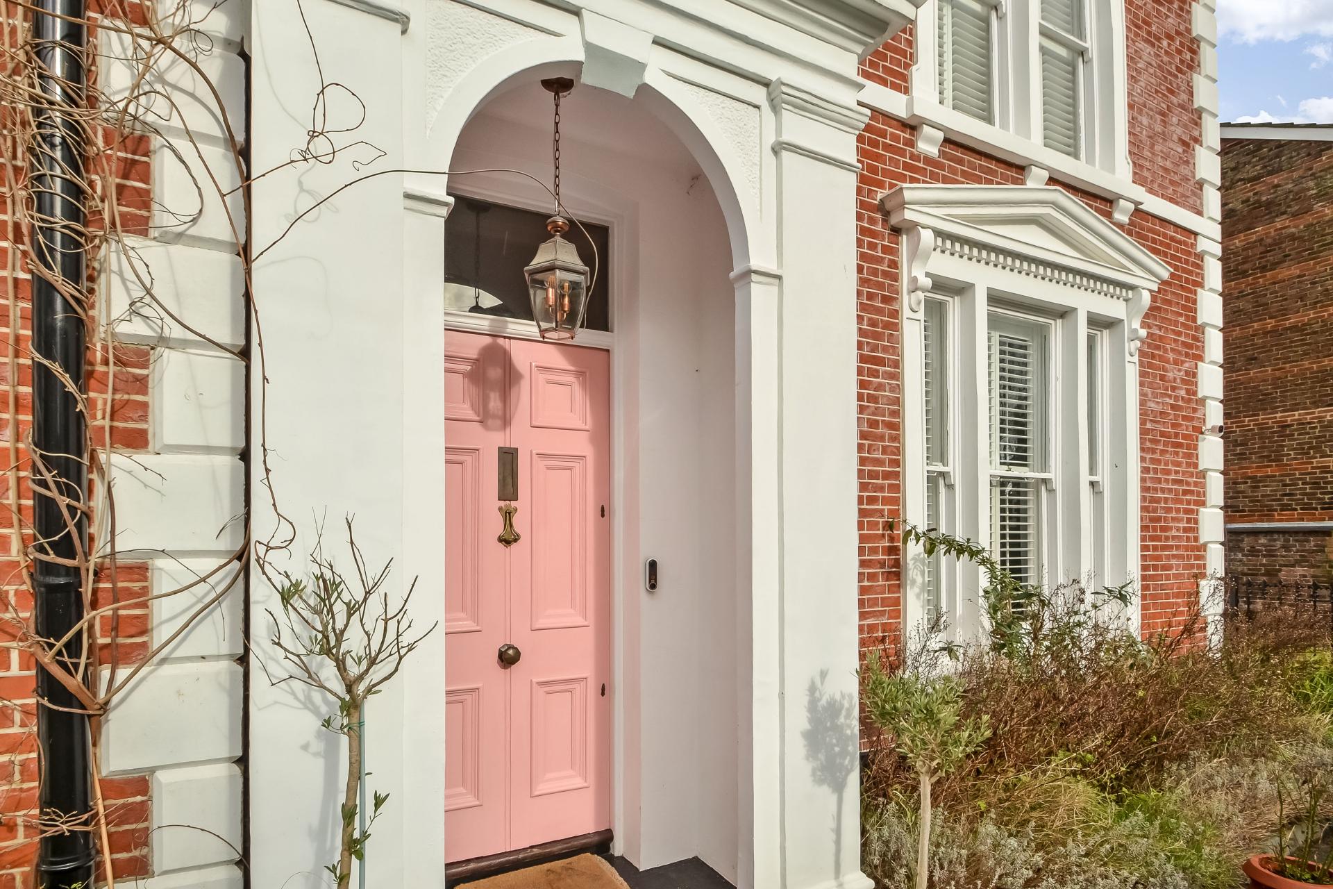 ENTRANCE Recently rebuilt brick wall with rendered coping stones over, wrought iron pedestrian gate leading to paved front garden, mature shrubs, evergreens and bushes with low lying Lilac, side bin storage area, soldier style fencing with pedestrian gate leading to lawned garden to the right hand side of the property enclose by brick wall on one side, feature arched porch with main front door with brass furniture leading to: