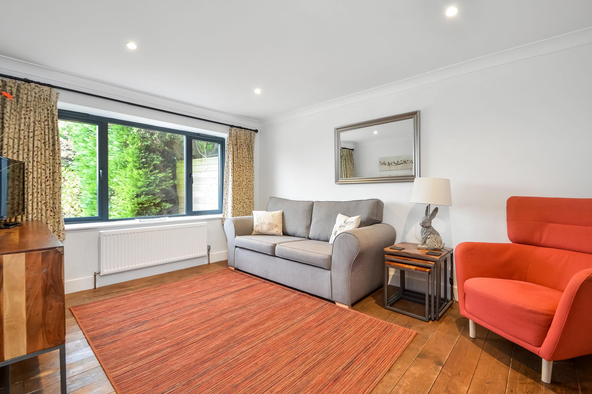 KITCHEN/DINING ROOM 18' 3" x 10' 4" (5.56m x 3.15m) Wood flooring, balustrade staircase rising to first floor with understairs storage cupboard, radiator, range of matching wall and floor units, range of drawer units, tiled splashback, inset electric hob with oven under and extractor hood, fan and light over, 1½ bowl sink unit with mixer tap and cupboards under, integrated fridge with matching door, one cupboard housing boiler supplying domestic hot water and central heating to annexe only (not tested), twin double glazed doors leading to rear courtyard style garden, second radiator, square opening leading to living room.