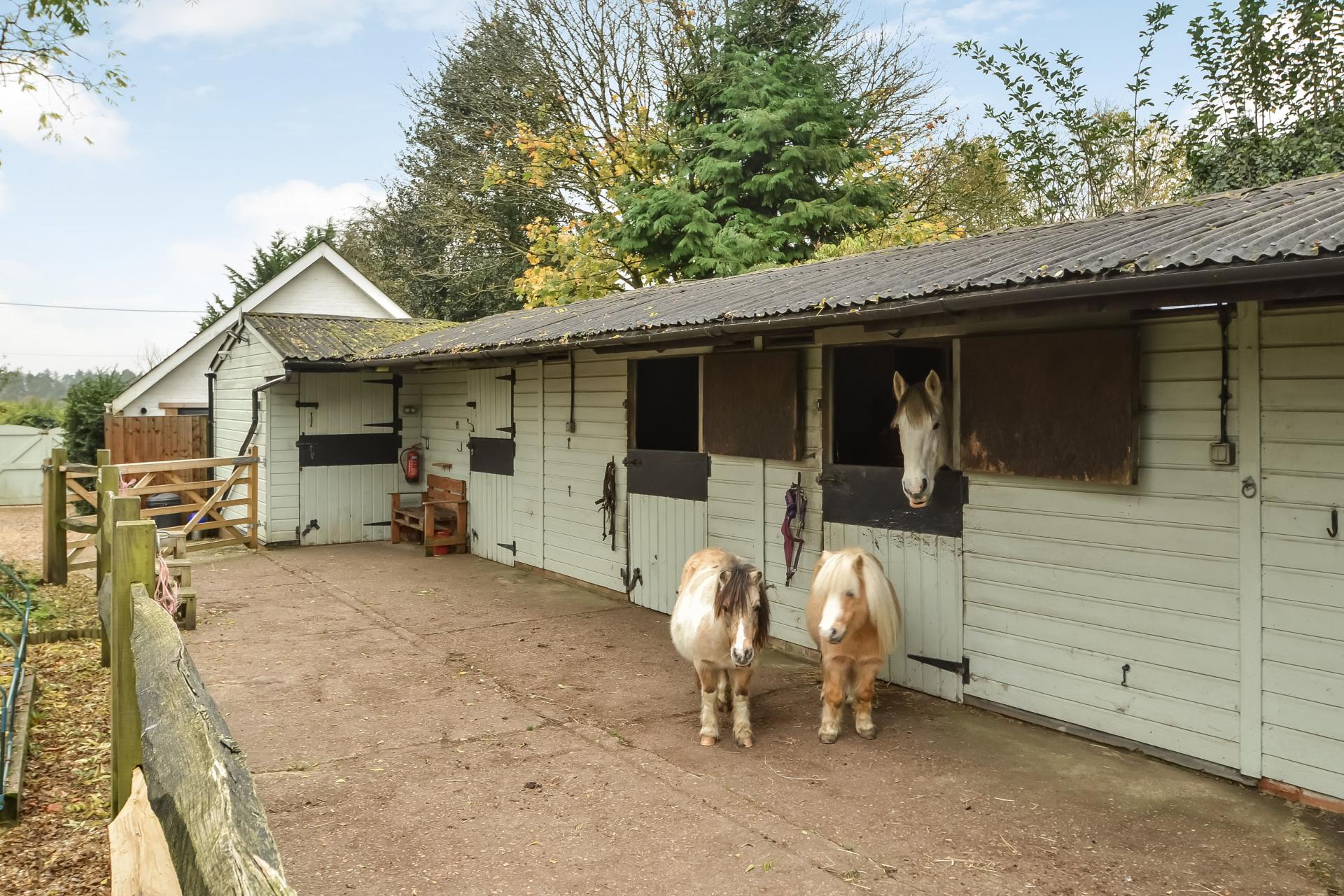 OUTSIDE Directly to the rear is a lawned garden with mature trees and shrubs enclosed by fence panelling on one side with paddock fencing and stabling to the other, central wooden step and arched opening leading to further lawned area enclosed by hedge and trellis fencing, to the rear of the primary garden is a large patio area and mature tree, to the left hand side is range of stabling. Opening via a small pedestrian gate is access to a gated lane coming off Bent Road which provides access through gated entrances onto paddocks, stable style fencing and gateways providing access to paddocks with water supply.