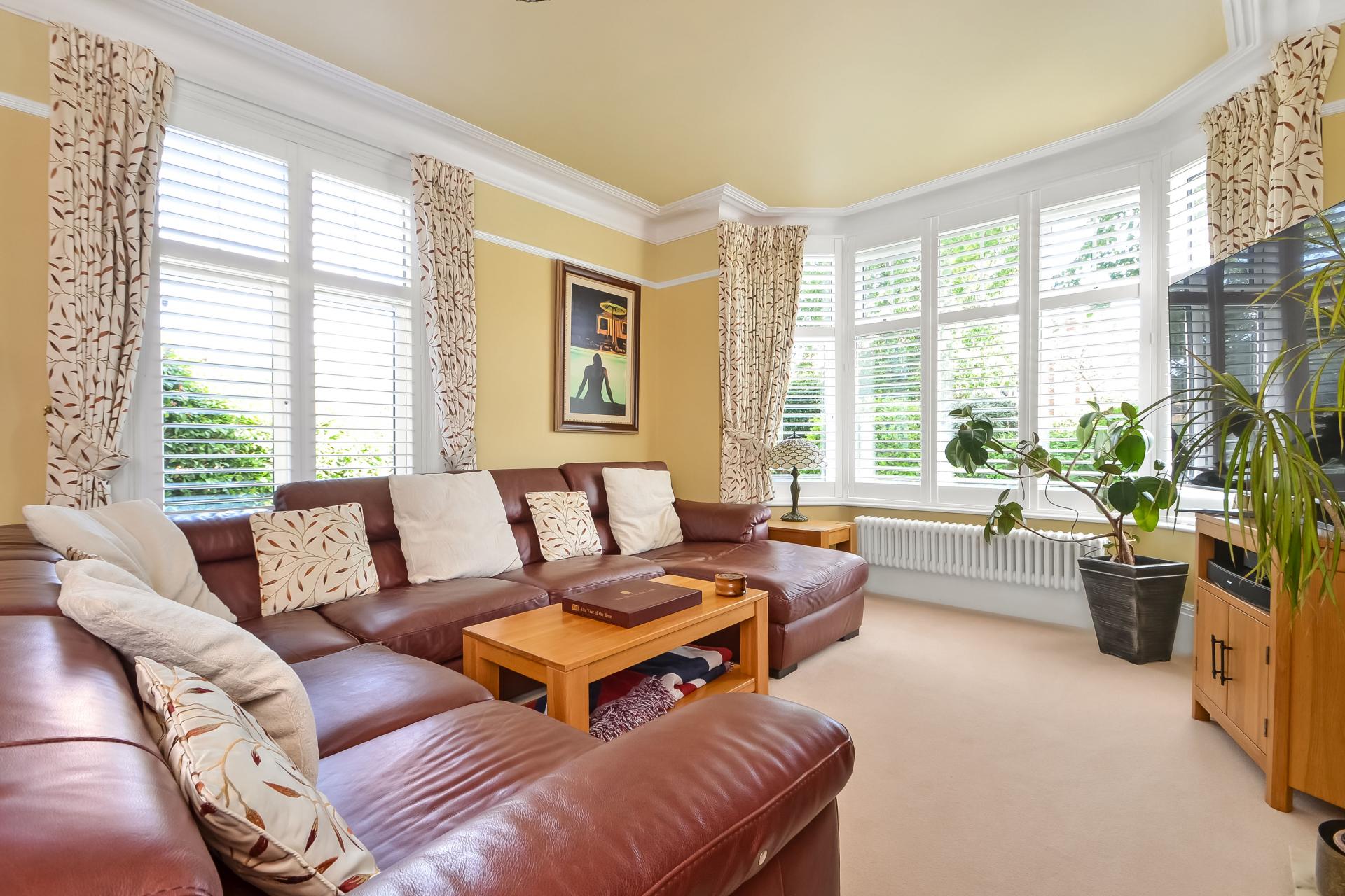 SITTING ROOM 18' 2" x 13' 1" (5.54m x 3.99m) Double glazed bay window to front aspect overlooking garden with plantation shutter blinds and roll top radiator under, double glazed window to side aspect with matching blinds, central chimney breast with granite surround fireplace with matching hearth, ceiling coving, picture rail, door to: