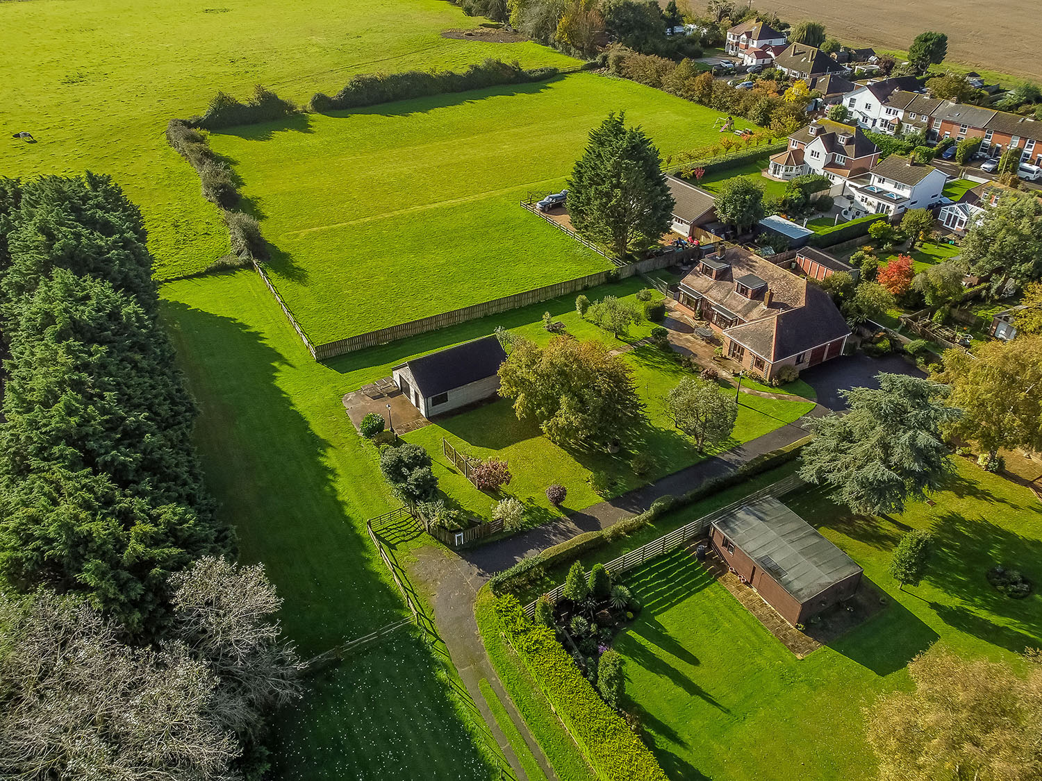 OUTSIDE The house is accessed from St Peters Avenue via a long driveway, which passes paddocks to the left, before turning towards the house. At the end of the driveway is a spacious parking area (with electric car charger) in front of the double garage (6.28m x 5.21m with twin electric up-and-over doors)