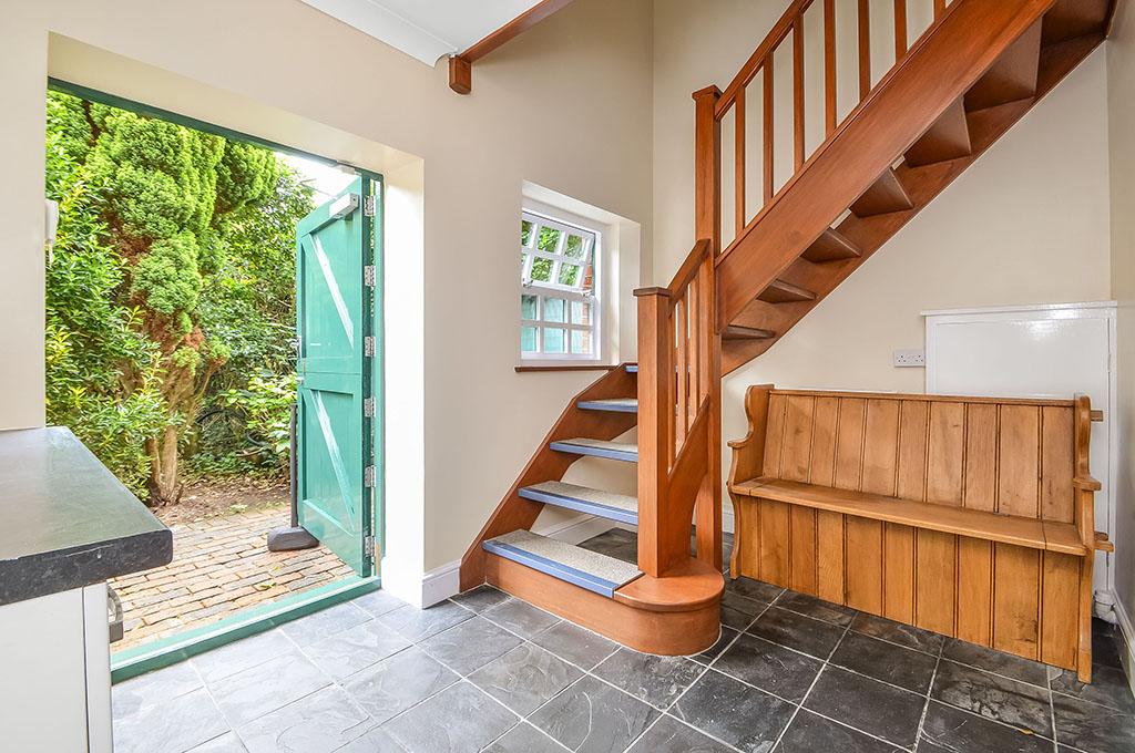 The Coach House, at the end of the garden concealed from the house by high hedging, has a main entrance hallway with a small kitchen and a shower room. The ground floor reception room is over 24 ft long x almost 14 ft wide and the open-plan upper floor over 36 ft long x almost 14ft wide, offering the ability for adaptation if desired.