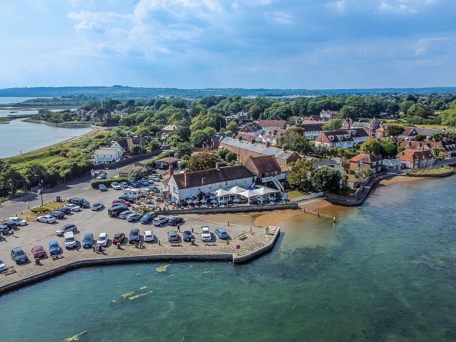 STEP OUTSIDE To the front the house there two sets of twin brick pillars leading onto separates driveways. To one side a high wooden fence with vehicular gates gives access to a long gravelled driveway to the detached garage, complete with sail loft. The second driveway also has double-wooden gates leading to a secure boat park (the storage unit can remain if desired) and a useful large garden storage area. It is possible to park about 11 cars on site.
