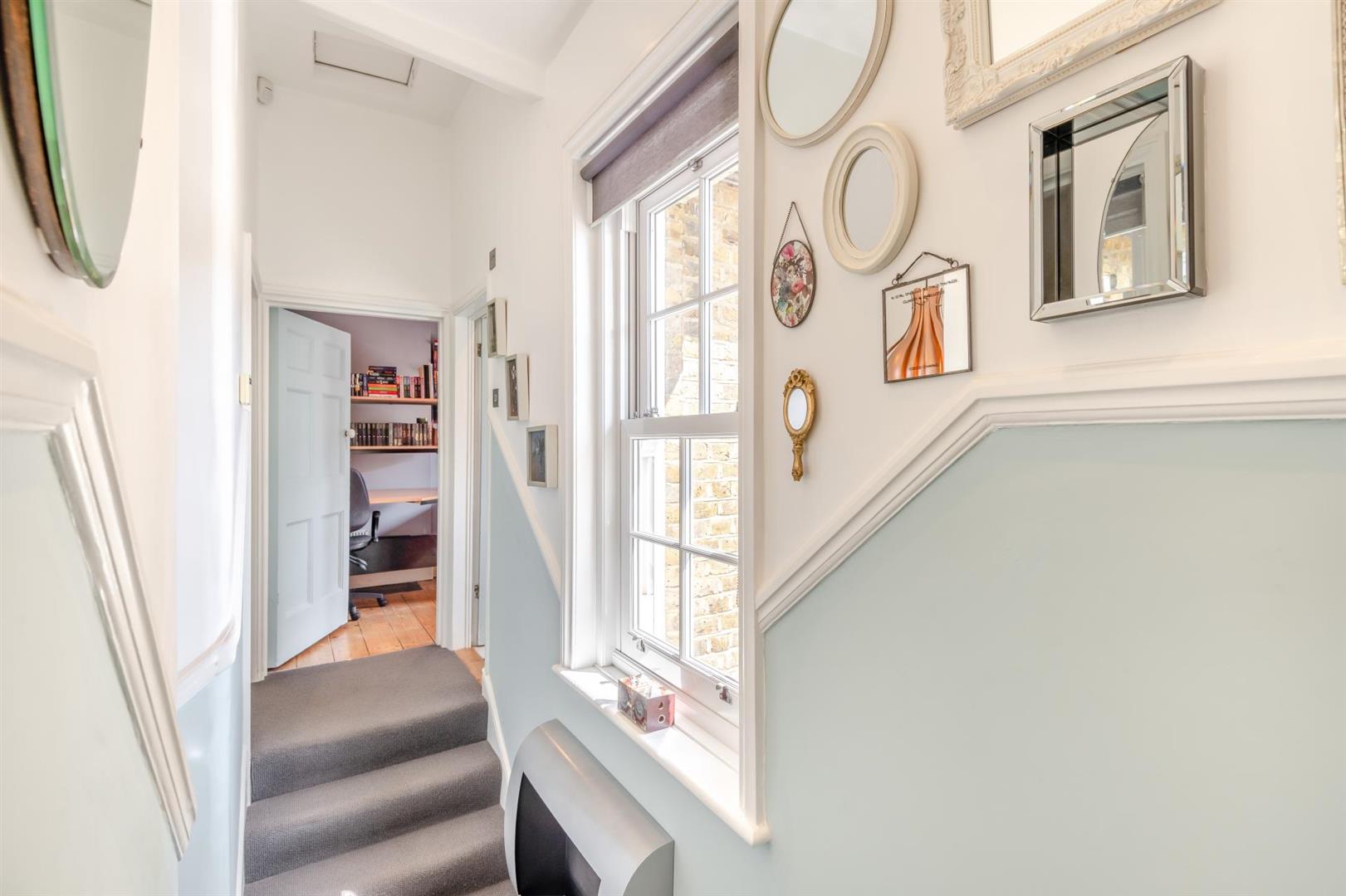 Inside, the property boasts a bright and spacious kitchen with a skylight window, elegant marble-tiled bathrooms with underfloor heating, and beautifully preserved original parquet and pine flooring throughout. Sash-style double glazing adds charm and efficiency.