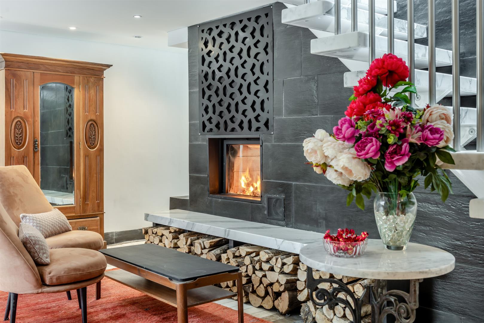 .Luxury Finishes: Marble flooring throughout the ground level, marble staircase, and stone-clad bathrooms for a refined aesthetic.