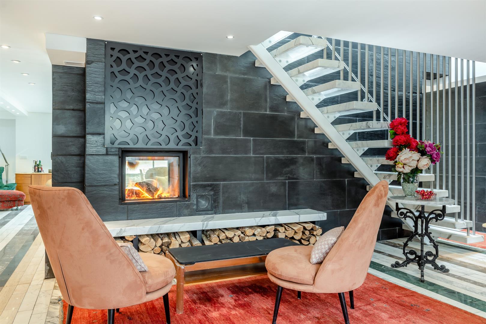 .Indoor-Outdoor Living: Expansive open-plan spaces extend onto a patio and landscaped garden, perfect for entertaining.