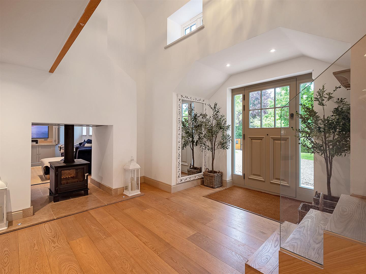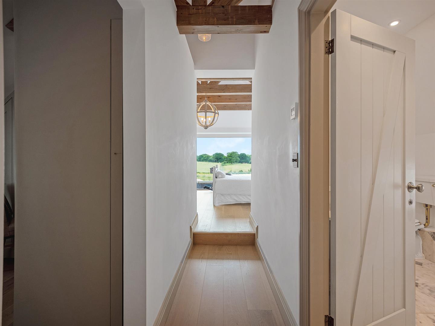 Additional features include a gated entrance, a grand hall with a bespoke wine cellar, and a double-aspect fireplace connecting the living and entrance areas, all set against sweeping countryside views. For equestrian enthusiasts, a reputable livery yard is conveniently situated nearby, offering a comprehensive range of services to accommodate your horse. From the comfort of your home, you can enjoy the reassuring sight of your equine companion grazing in the adjacent paddocks, blending country living with equestrian convenience.