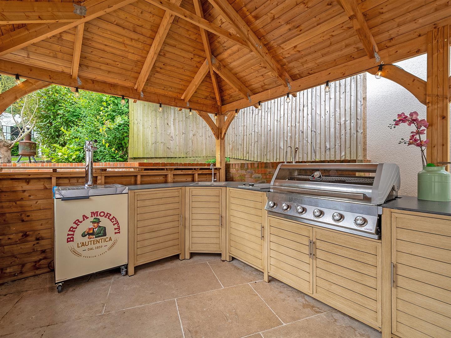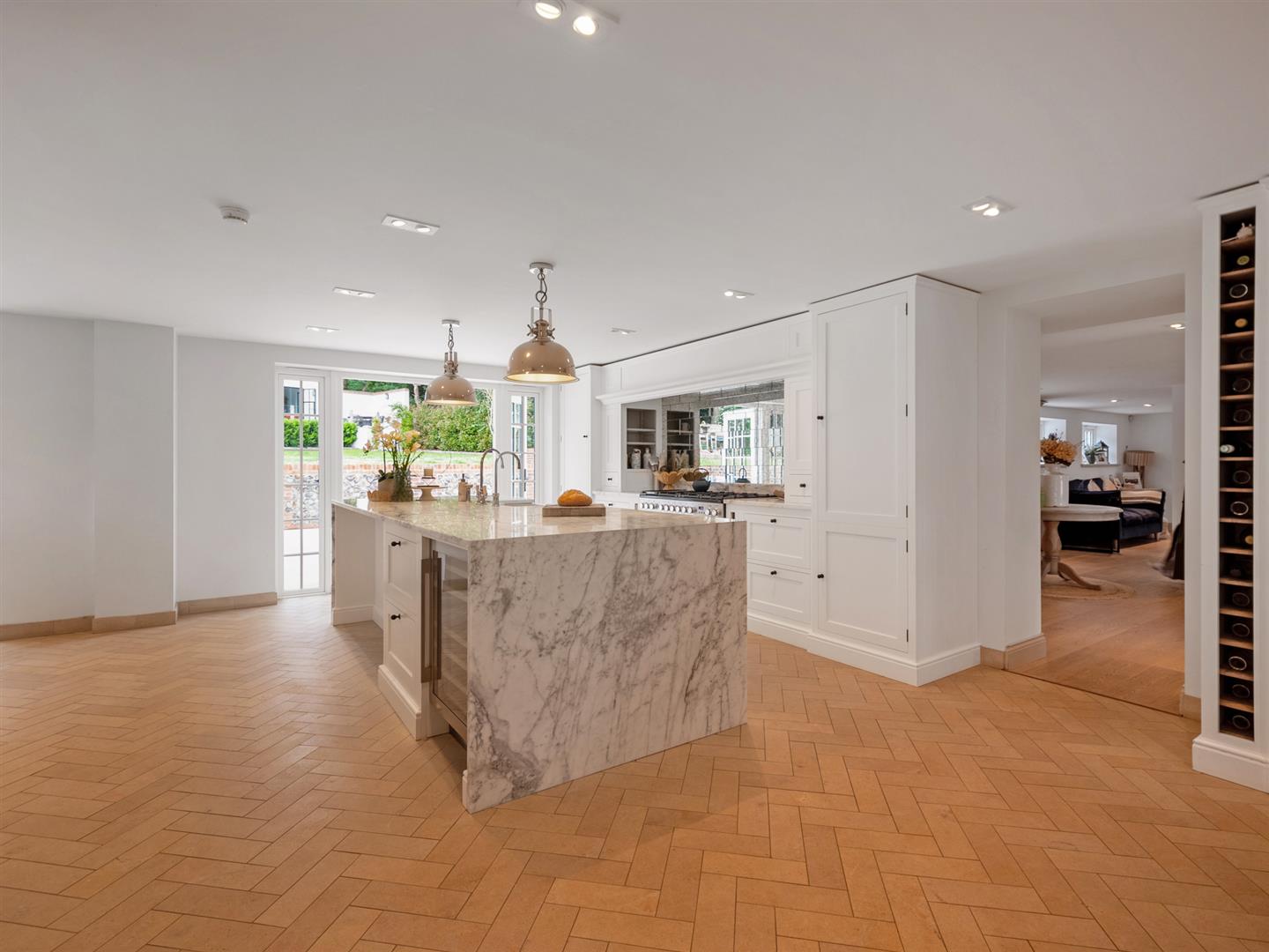 The heart of the home is its bespoke Neptune Henley kitchen, featuring a striking three-meter island with a marble countertop and high-quality appliances. Accommodation includes four generously sized double bedrooms, each thoughtfully designed to maximize space and natural light.