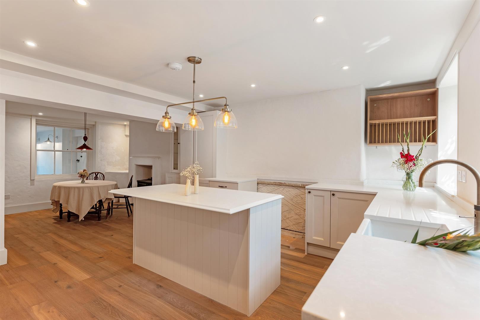 Occupying its own dedicated level, the kitchen and dining area has been painstakingly restored, using traditional and natural materials like lime plaster and lime wash paints, breathing new life into the home. The space has been tastefully finished, with another washroom/small utility tucked away, to allow for practical family living.
