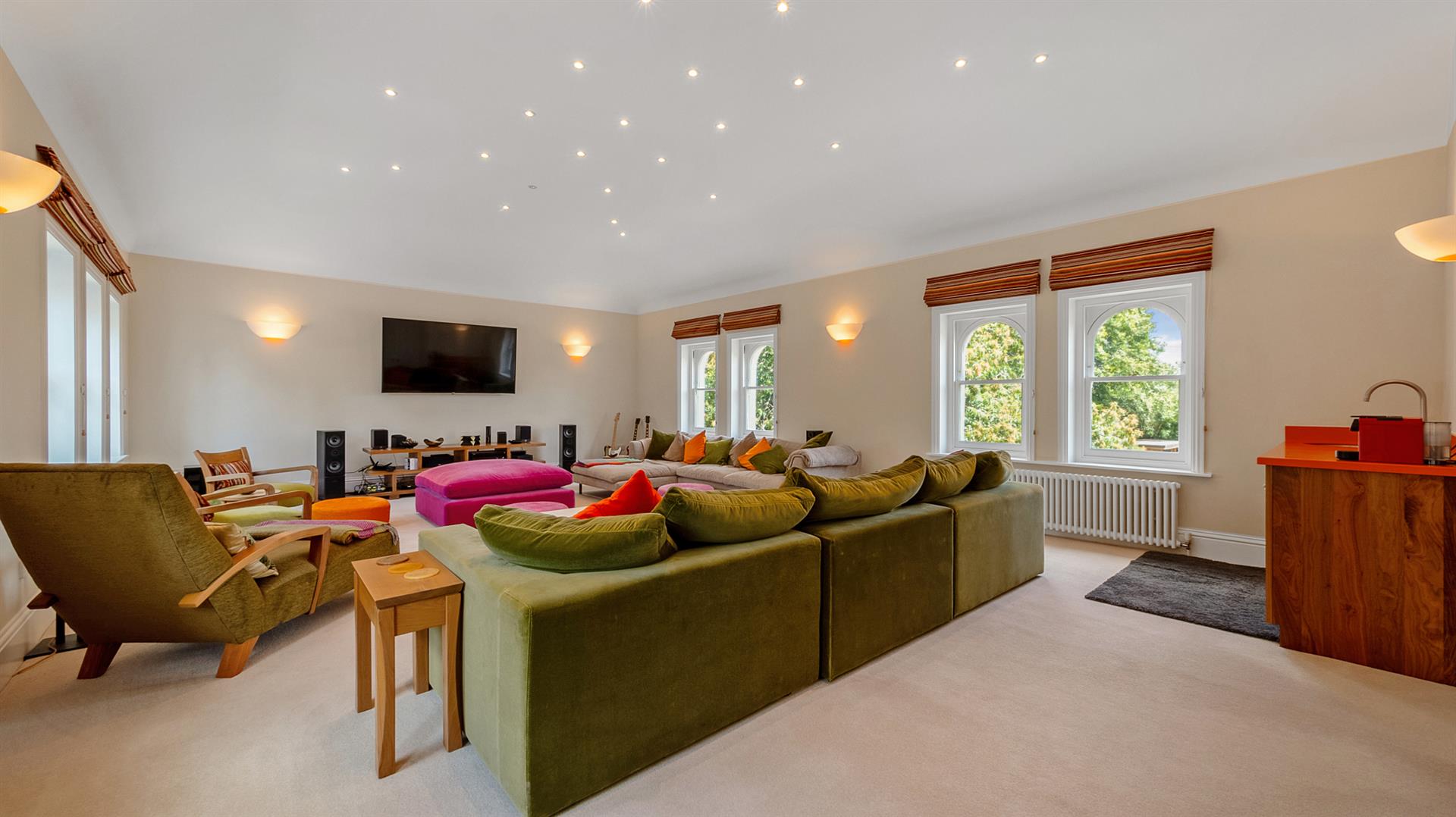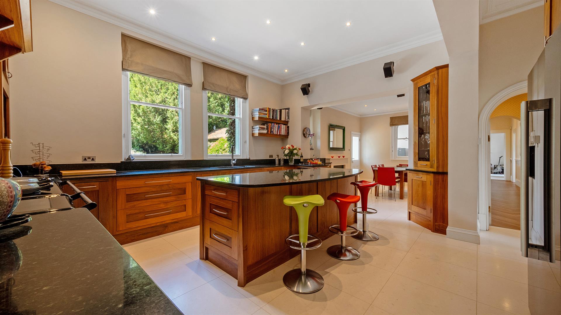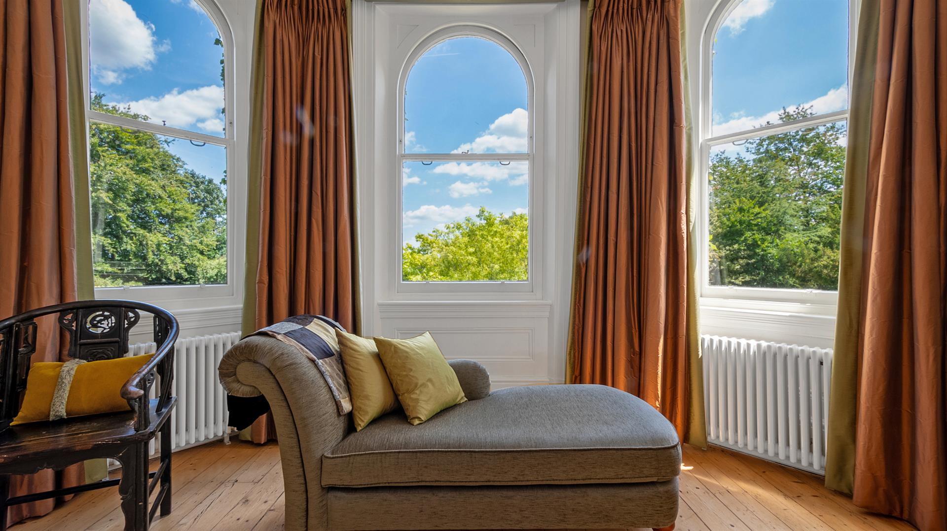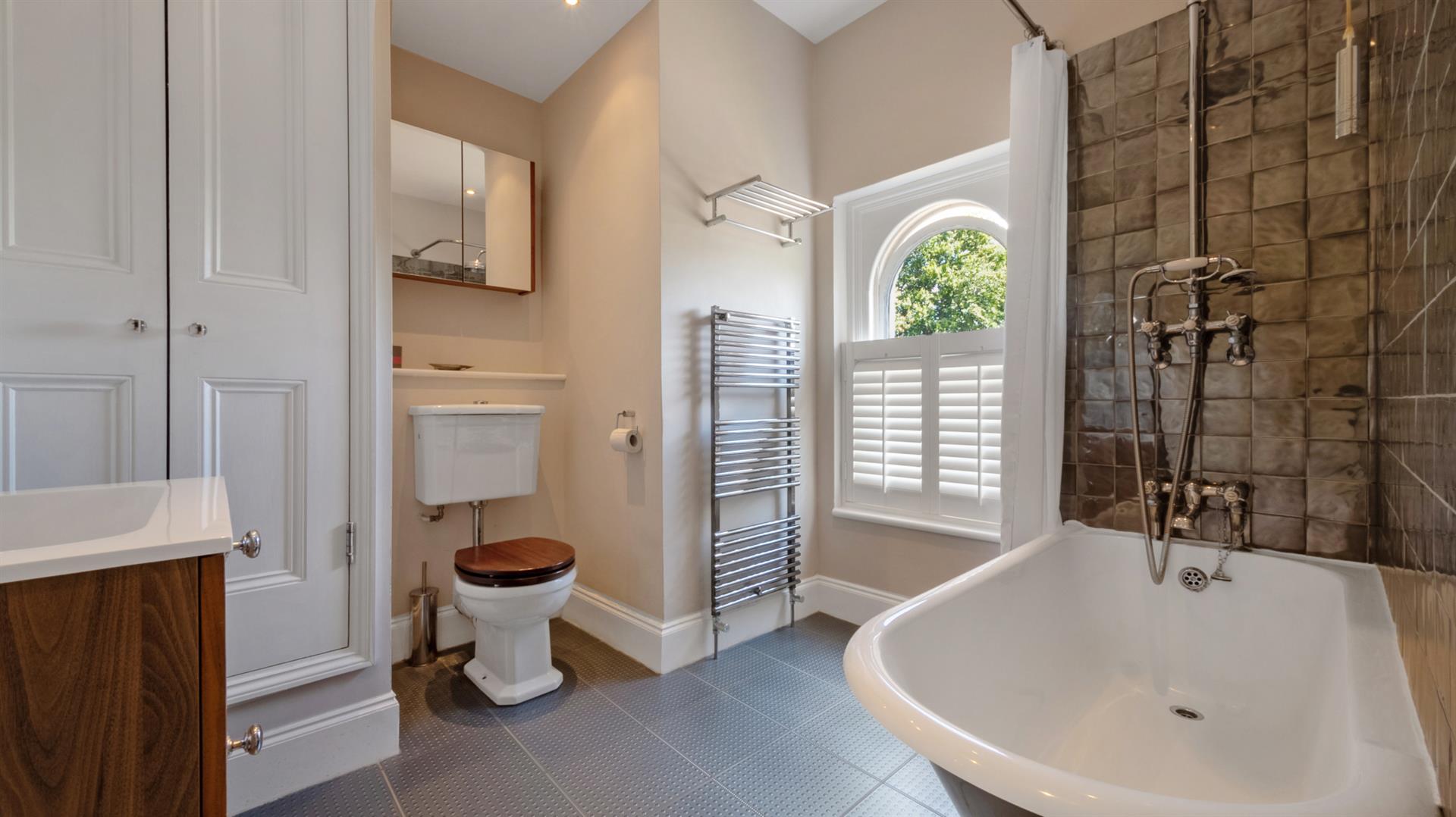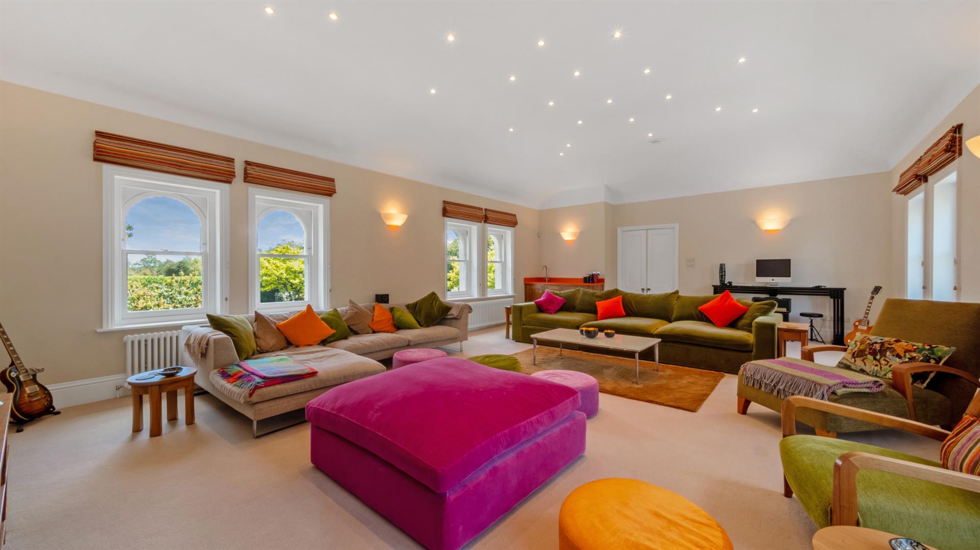 Inside, the property boasts a series of light-filled reception rooms, including a formal drawing room, stylish living room and charming conservatory that opens onto the gardens. The home includes a cellar for storage or future development and a well-appointed kitchen, alongside generous bedrooms and stylish bathrooms that mix character with contemporary finishes.