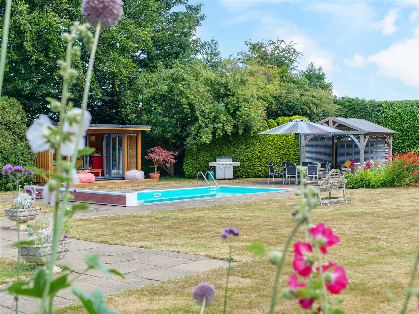 The grounds are a standout feature, boasting expansive lawns, mature planting, a private swimming pool, tennis court, and a summer house, ideal for entertaining or relaxing in peaceful seclusion. A stone terrace and established pathways wind through the garden, enhancing the sense of privacy, space, and tranquillity.