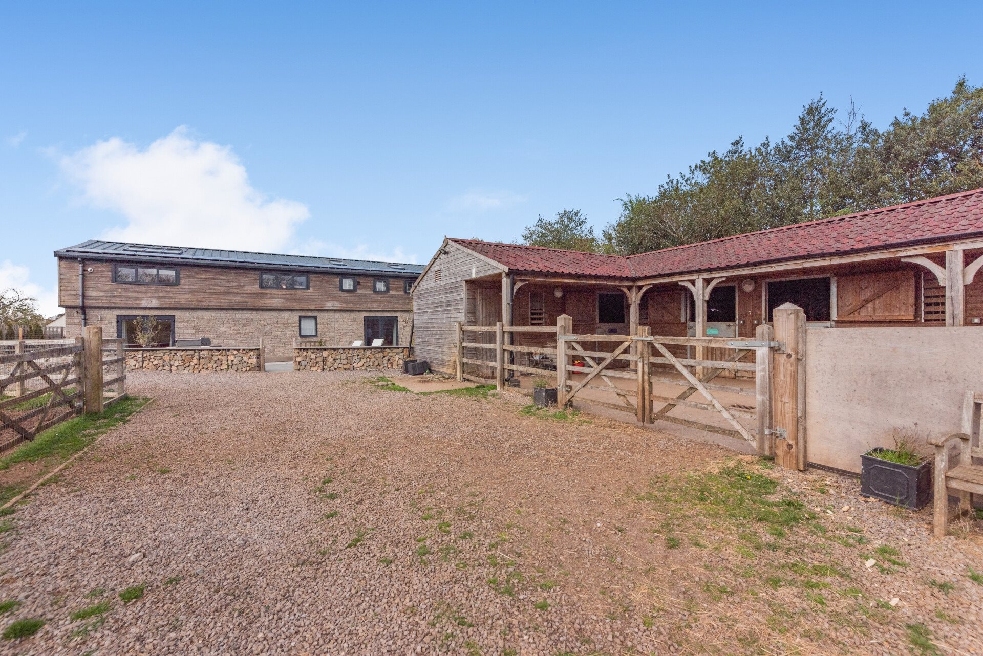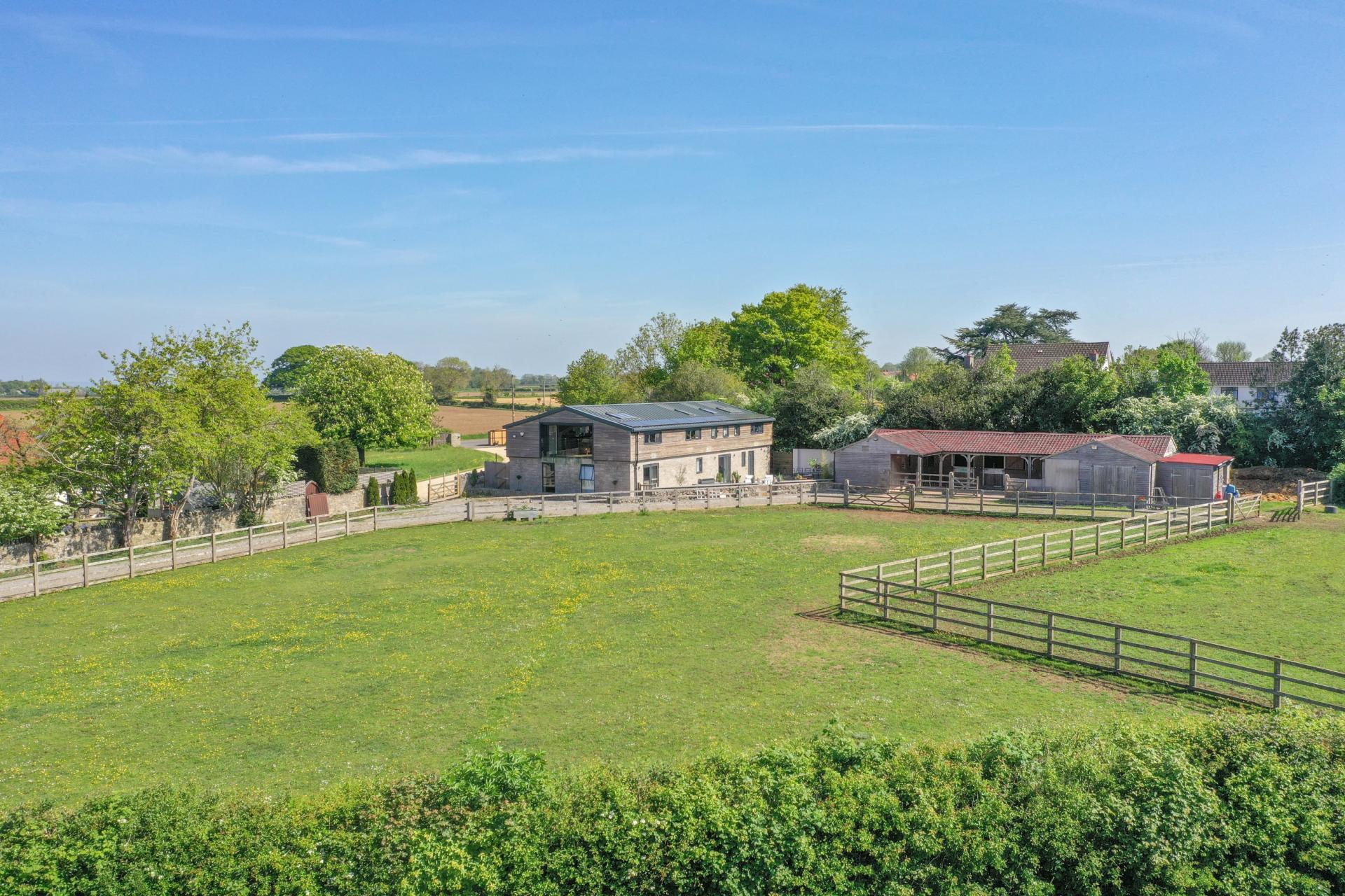 - Includes a large six-stable complex with tack room and enclosed paddock