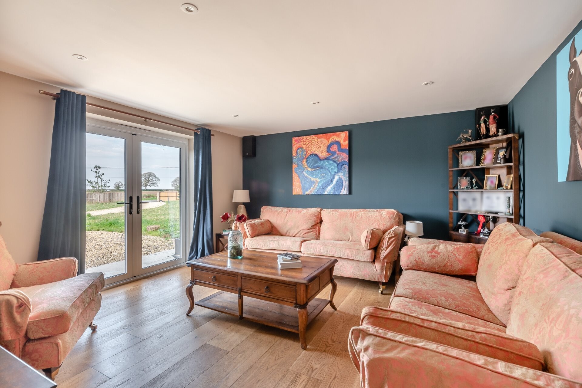 In addition to the expansive living area, the property features a cosy snug, perfect for quiet evenings, and a light study that provides access to your patio area. The accommodation includes four double bedrooms, two of which are en-suite with their own dressing rooms, providing privacy and luxury for both family members and guests. All bathrooms are finished to an exceptional standard, combining both style and practicality.