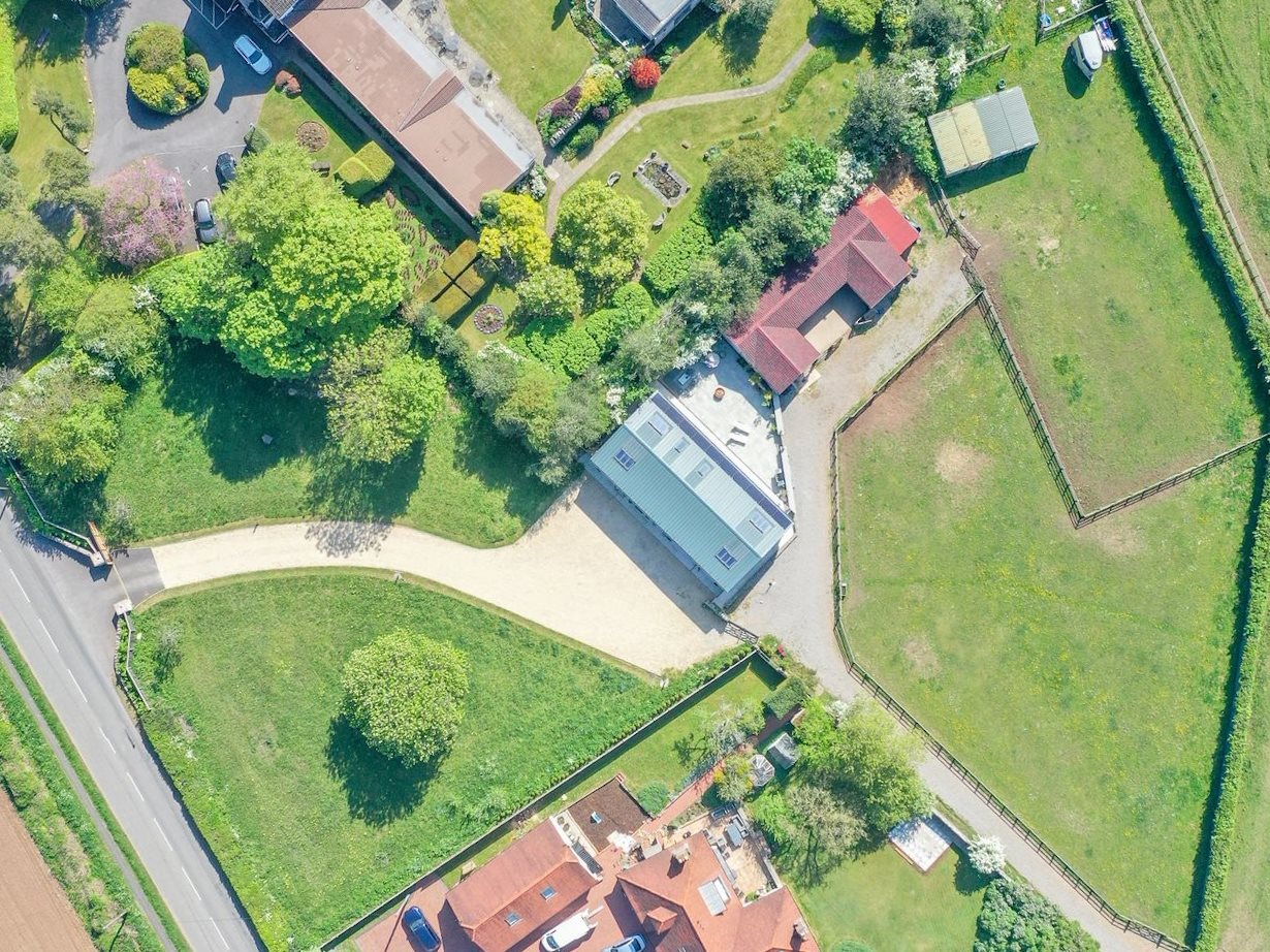 For equestrian enthusiasts, the property includes a large six-stable complex, while planning permission has been granted (Ref P23/01592/F) for the construction of an 18m x 12m barn of a similar nature to Pine Ridge. The grounds are accessed via a long, private, illuminated driveway with electric security gates, ensuring privacy and peace of mind.