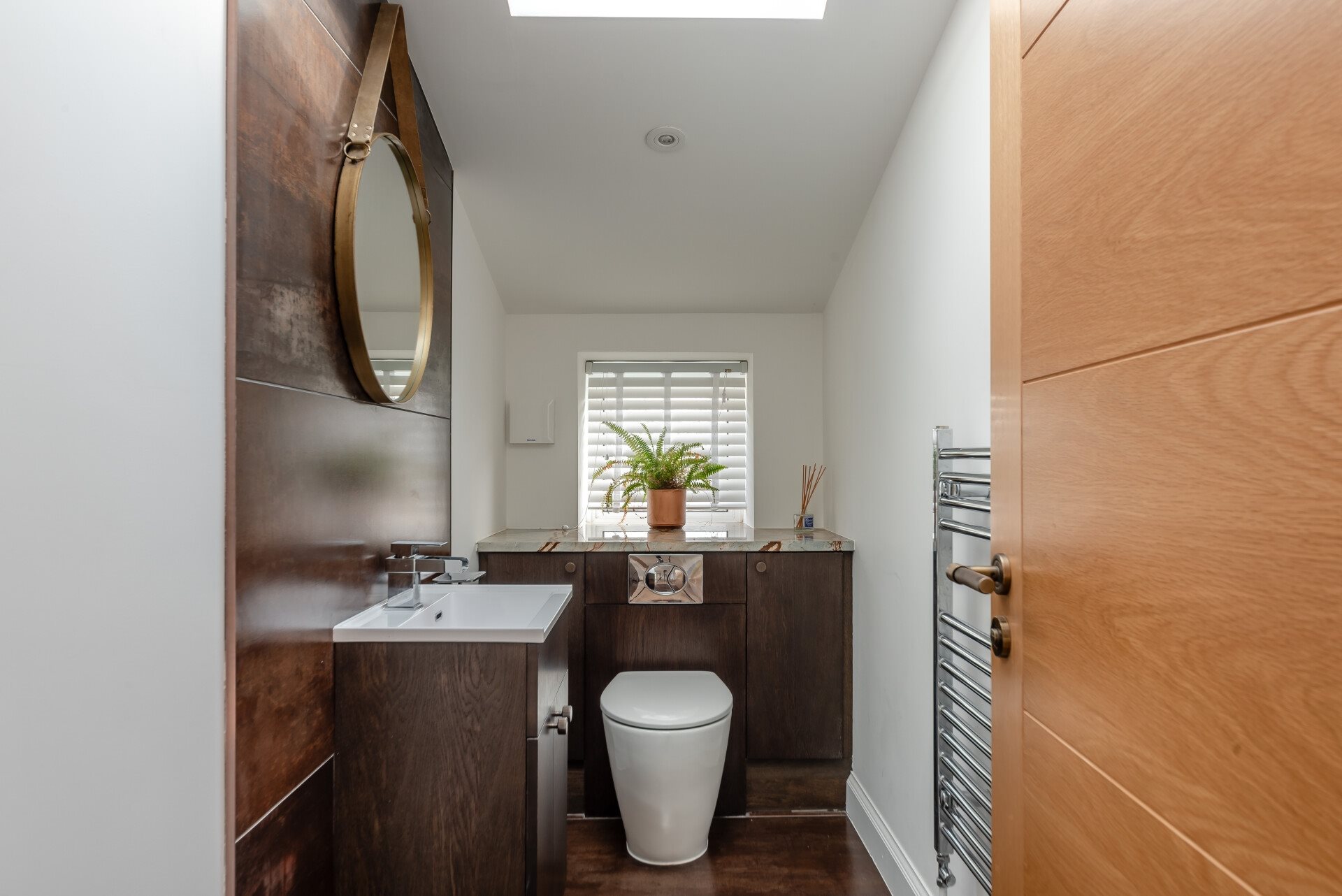 The kitchen is finished to the highest standard, with energy-efficient appliances, granite work surfaces, and a central island with an informal breakfast bar. Oak engineered flooring flows throughout much of the ground floor, adding warmth and character to the home.