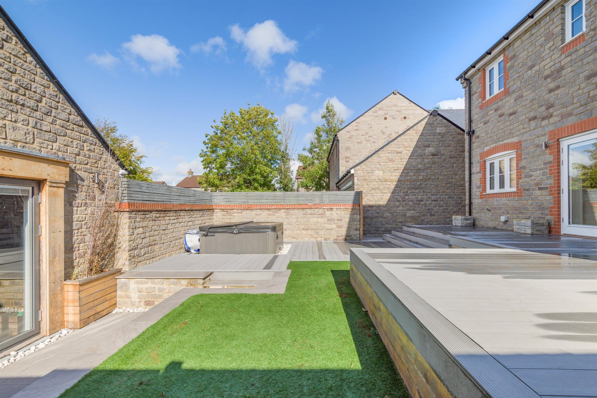 Outside - The rear garden has been thoughtfully designed with ease of maintenance in mind. Tiered to create distinct areas, it features artificial lawn, a decked terrace, and a luxurious hot tub offering the perfect setting for family enjoyment and relaxation.