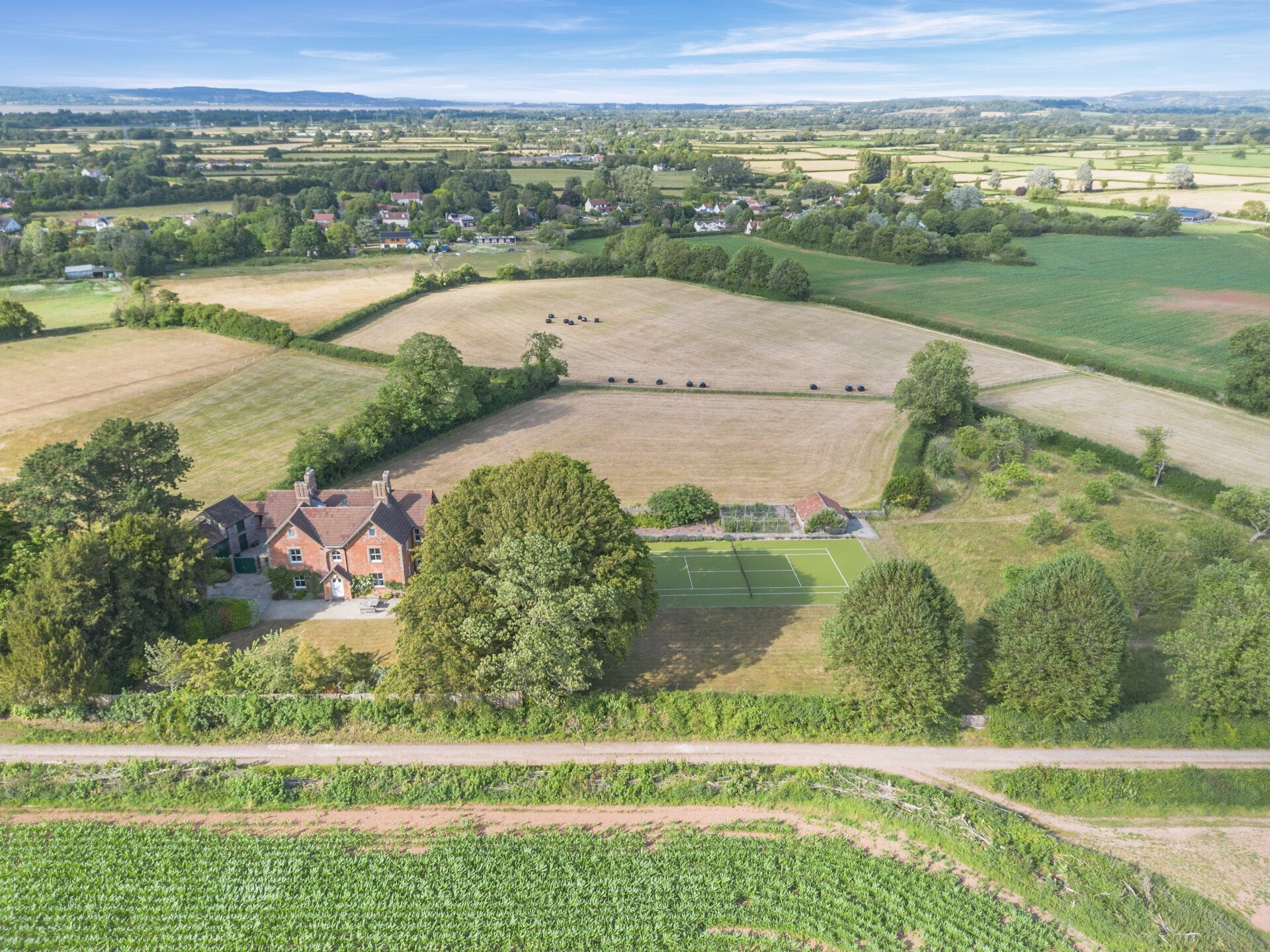 Outside - Outside, the grounds offer an unparalleled lifestyle opportunity. The meticulously maintained gardens include an astro turf tennis court bordered by lavender, a well established orchard, and a heated outdoor swimming pool with electric cover ideal for entertaining, recreation, or relaxation. A detached garage, adjacent hayloft, and stabling potential are set around a charming courtyard and provide significant scope for further development, subject to planning.