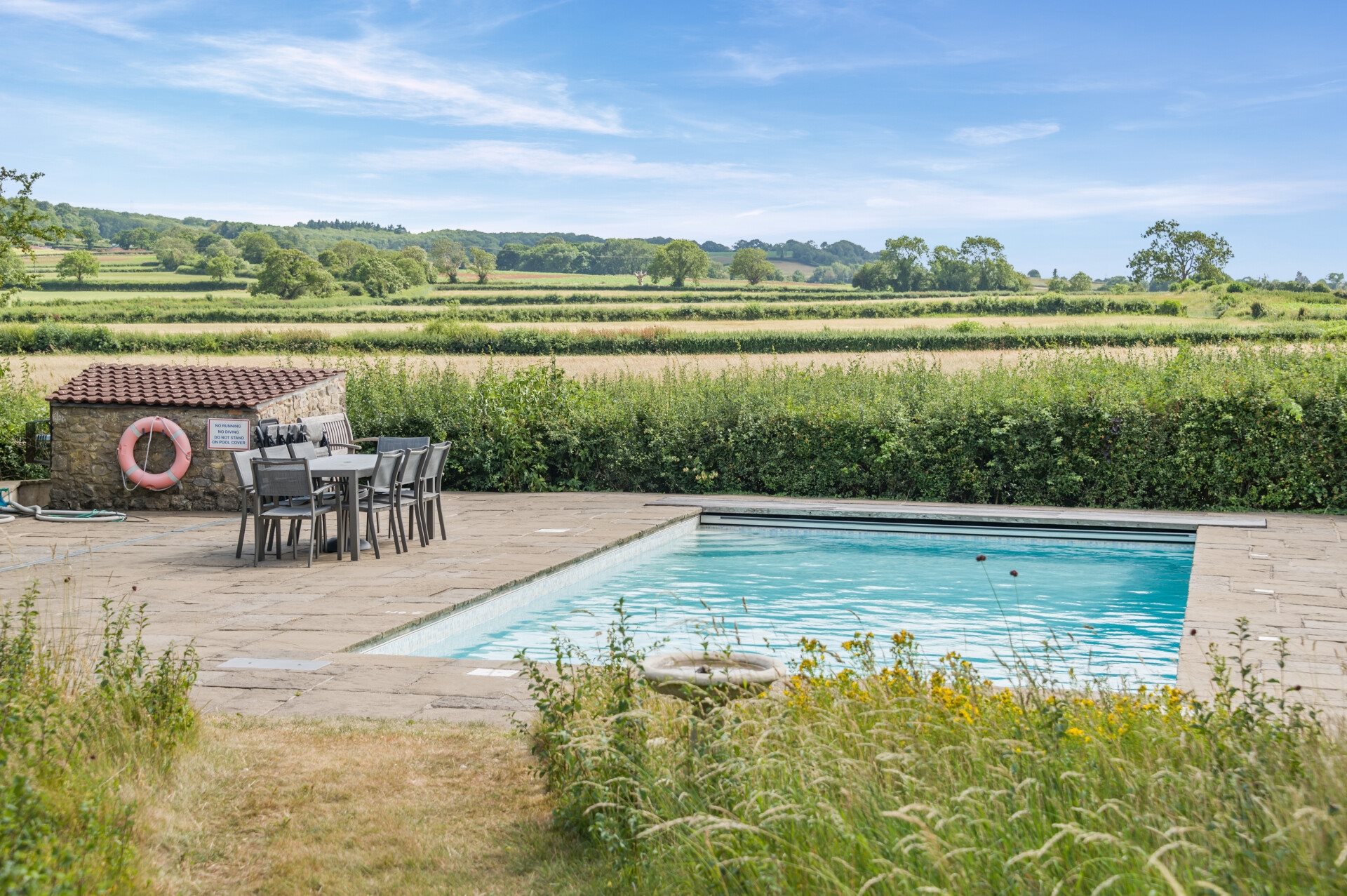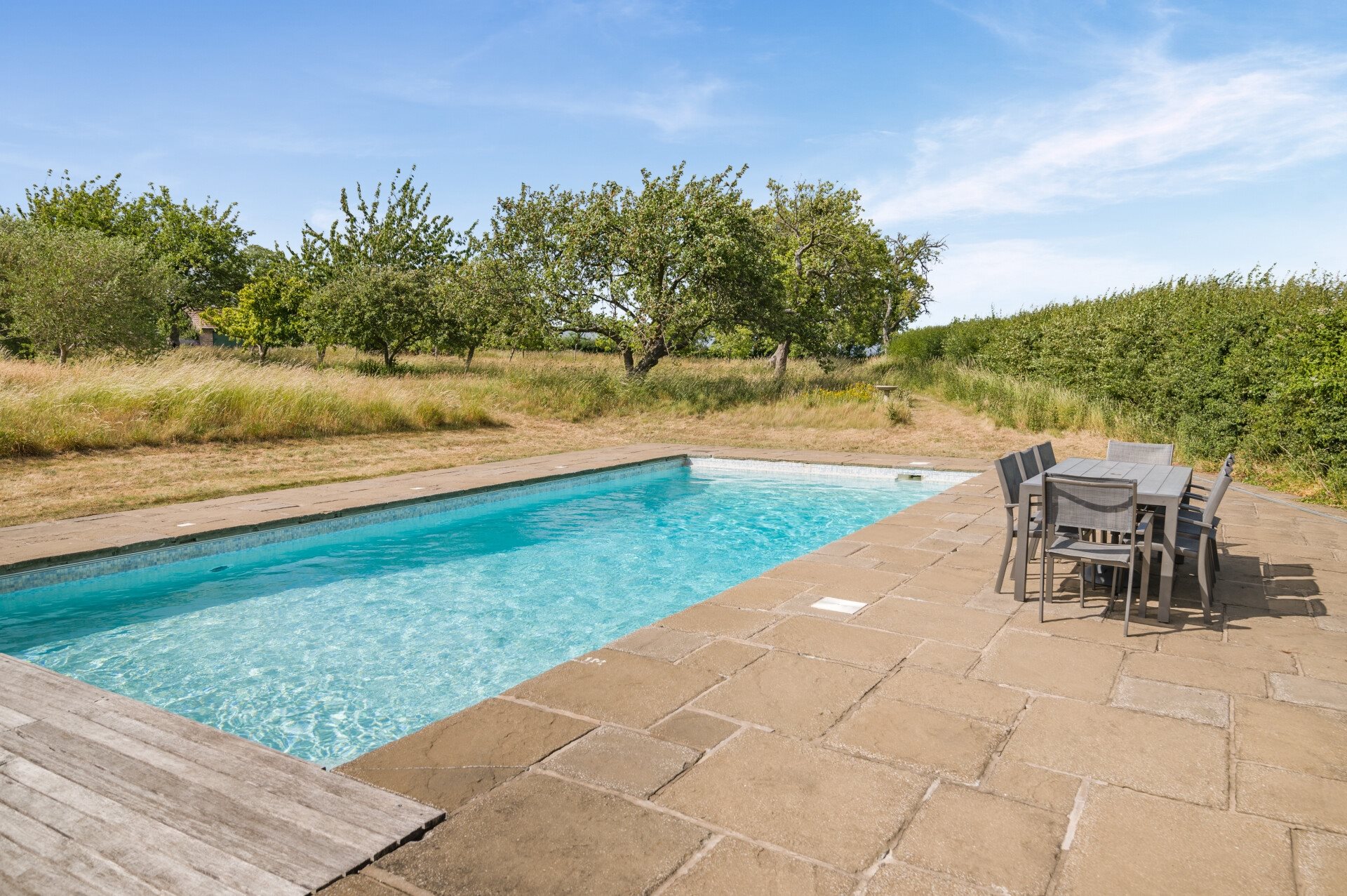 - Private outdoor swimming pool and astroturf tennis court