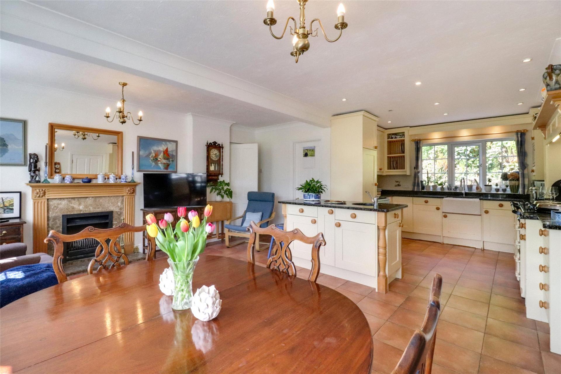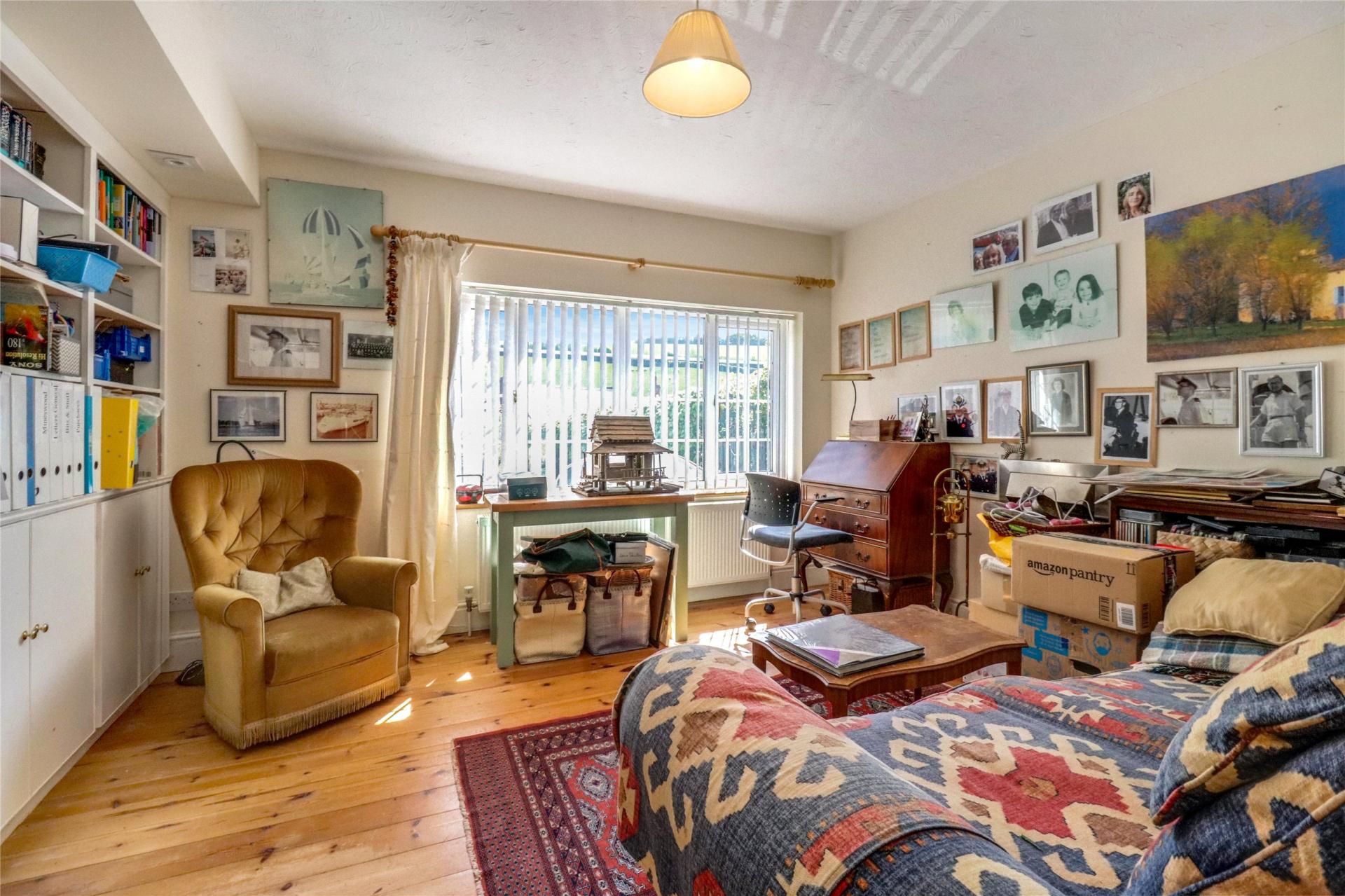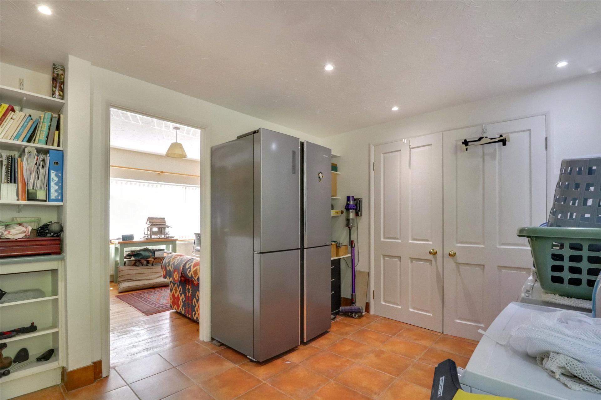 Adjacent to the kitchen is a large utility room offering excellent storage, along with space and plumbing for white goods. From here, there's direct access to the rear garden and a conveniently placed log store. A study or home office is also accessible from the utility room, offering flexible use as a fourth bedroom or additional living space.