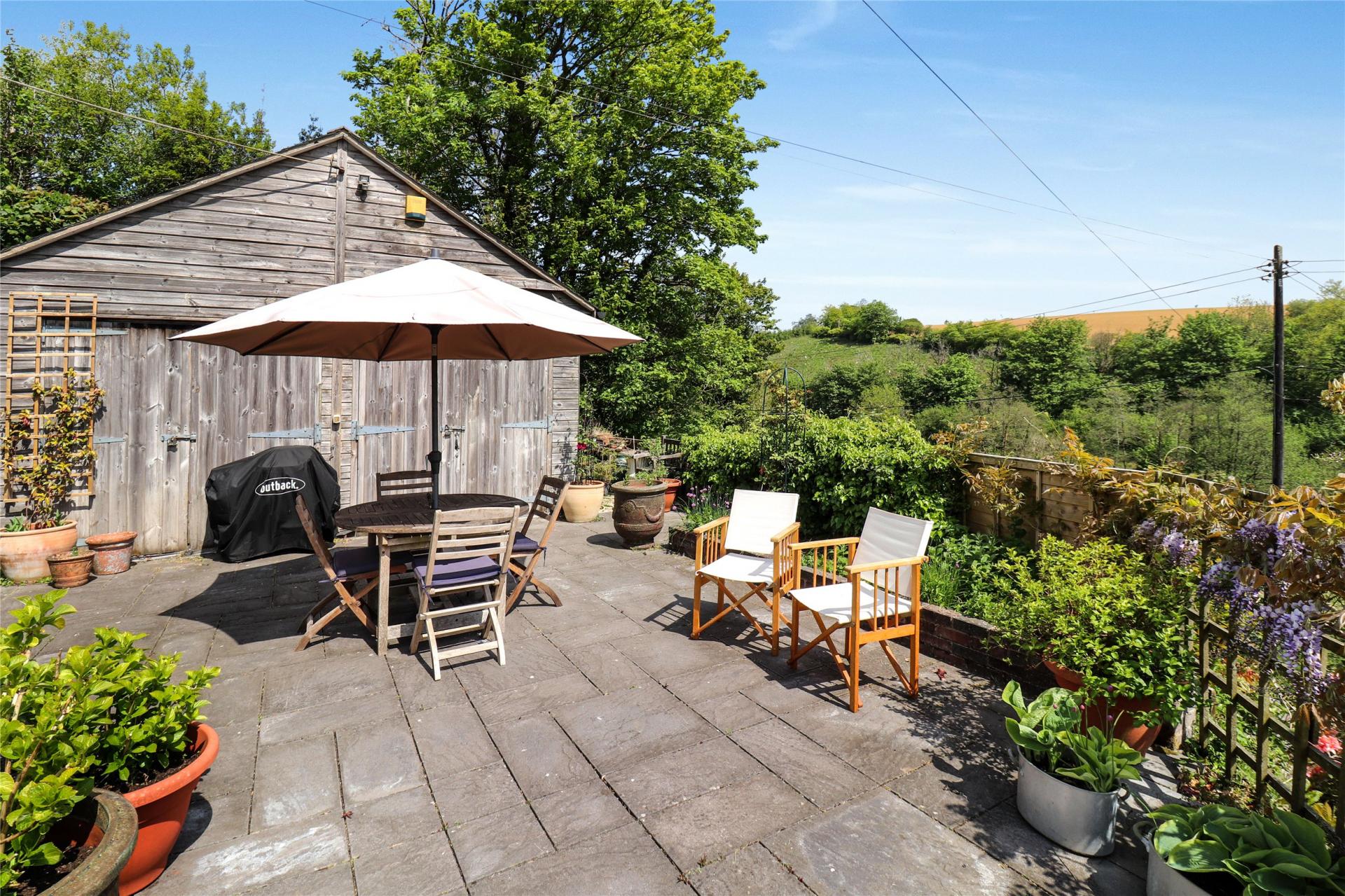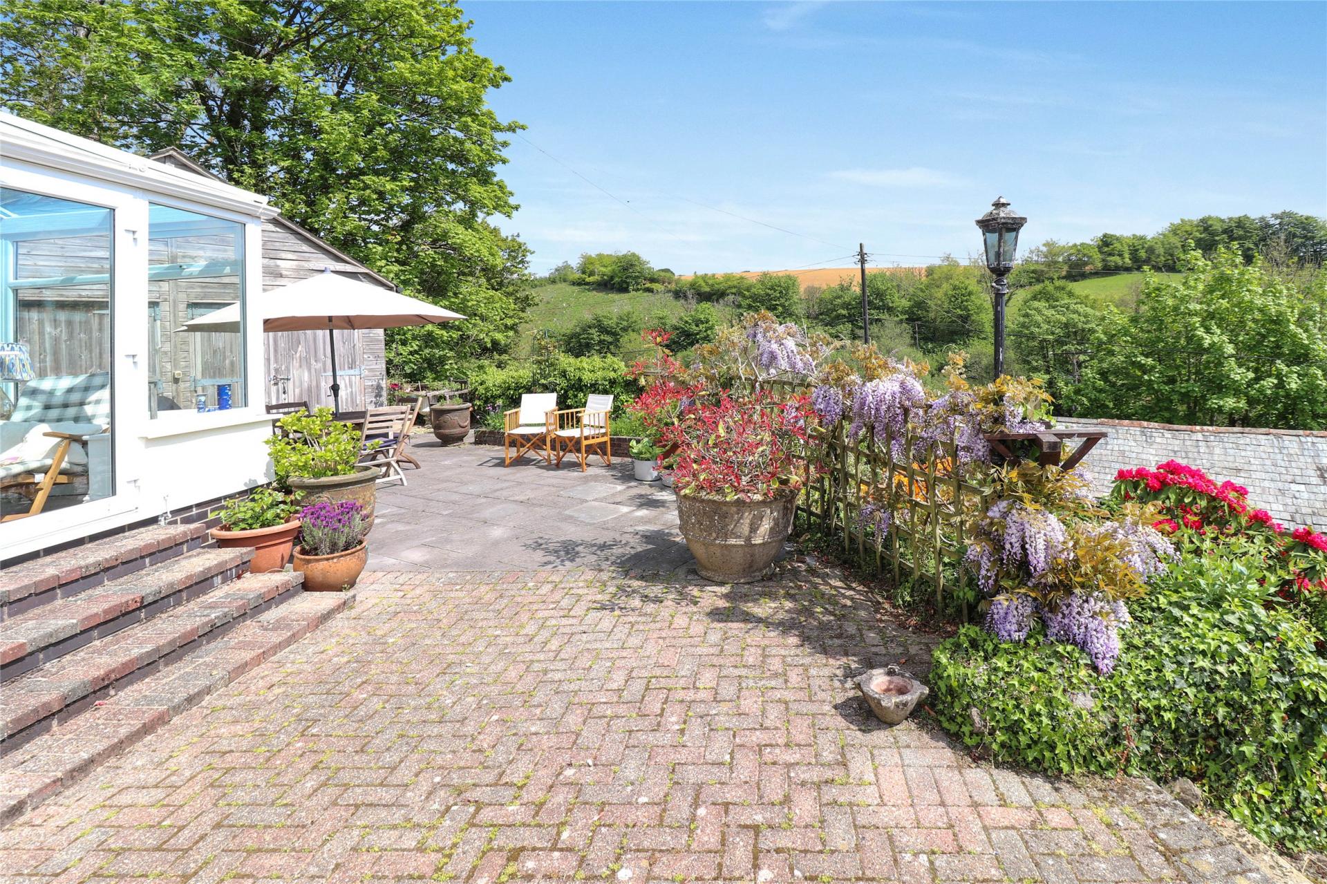 A charming patio area lies to the side, framed by a raised wall and draped in wisteria – the perfect place to enjoy the outstanding views.