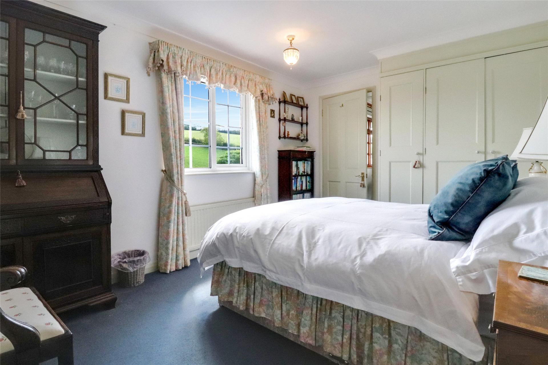 Upstairs, the main house offers four double bedrooms. At the top of the stairs there is a large double storage cupboard. The principal bedroom is spacious and features fitted wardrobes and a large en-suite with a walk-in shower, WC, wash hand basin, and built-in storage. This room enjoys outstanding views across the valley. Bedrooms two and three are well-proportioned doubles, with bedroom three benefitting from mirrored fitted wardrobes. The fourth bedroom, another generous double, offers flexible accommodation – it can be part of the main house or incorporated into the adjoining self-contained annexe via an internal connecting door.