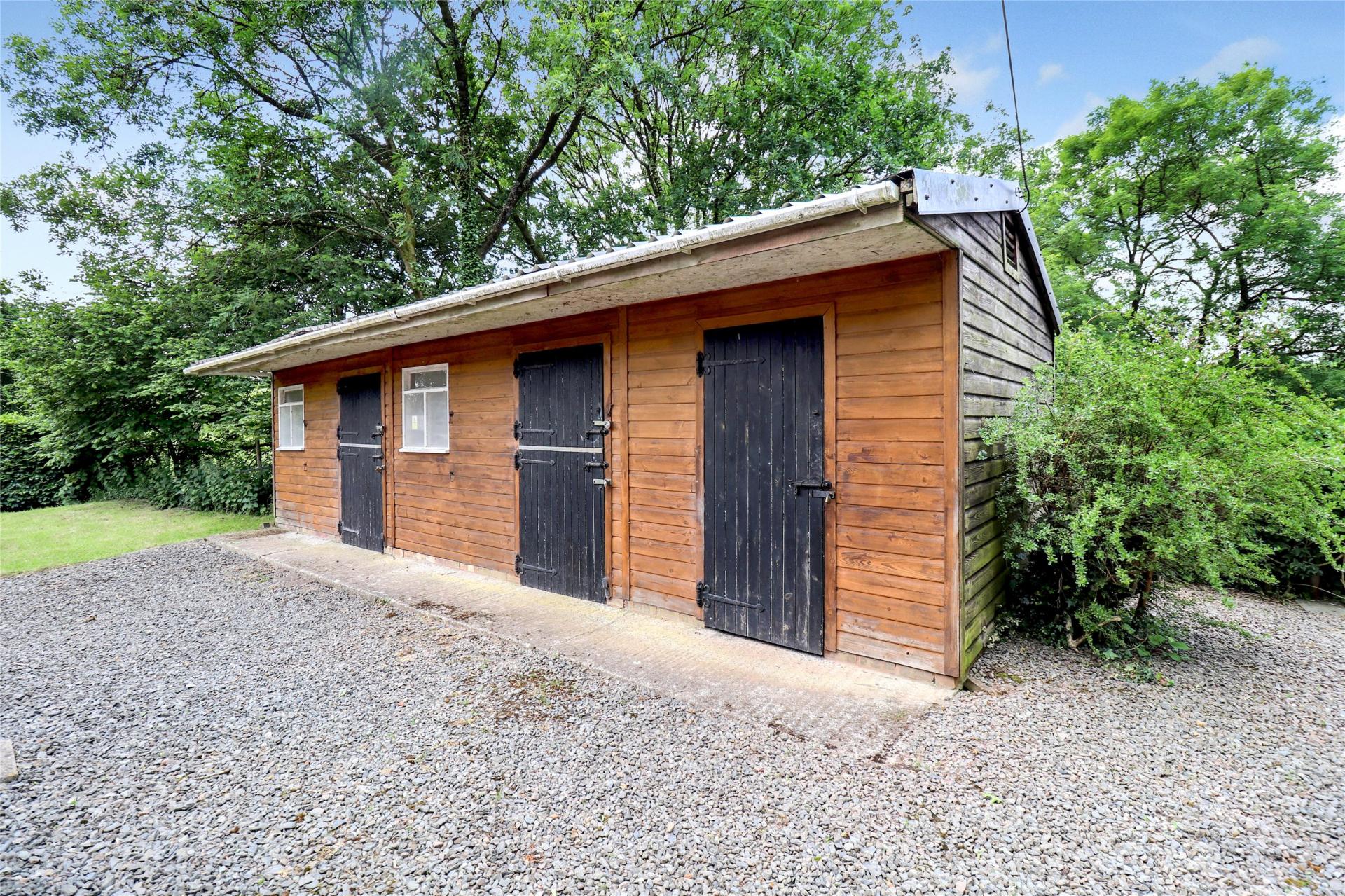 A five-bar gate with a cattle grid welcomes you into the property. To the left, you'll find a stone garage and workshop, with a stable block behind. At the far end of the garden, a gravel drive leads to a further outbuilding which was formerly a Shippon with an attached carport.