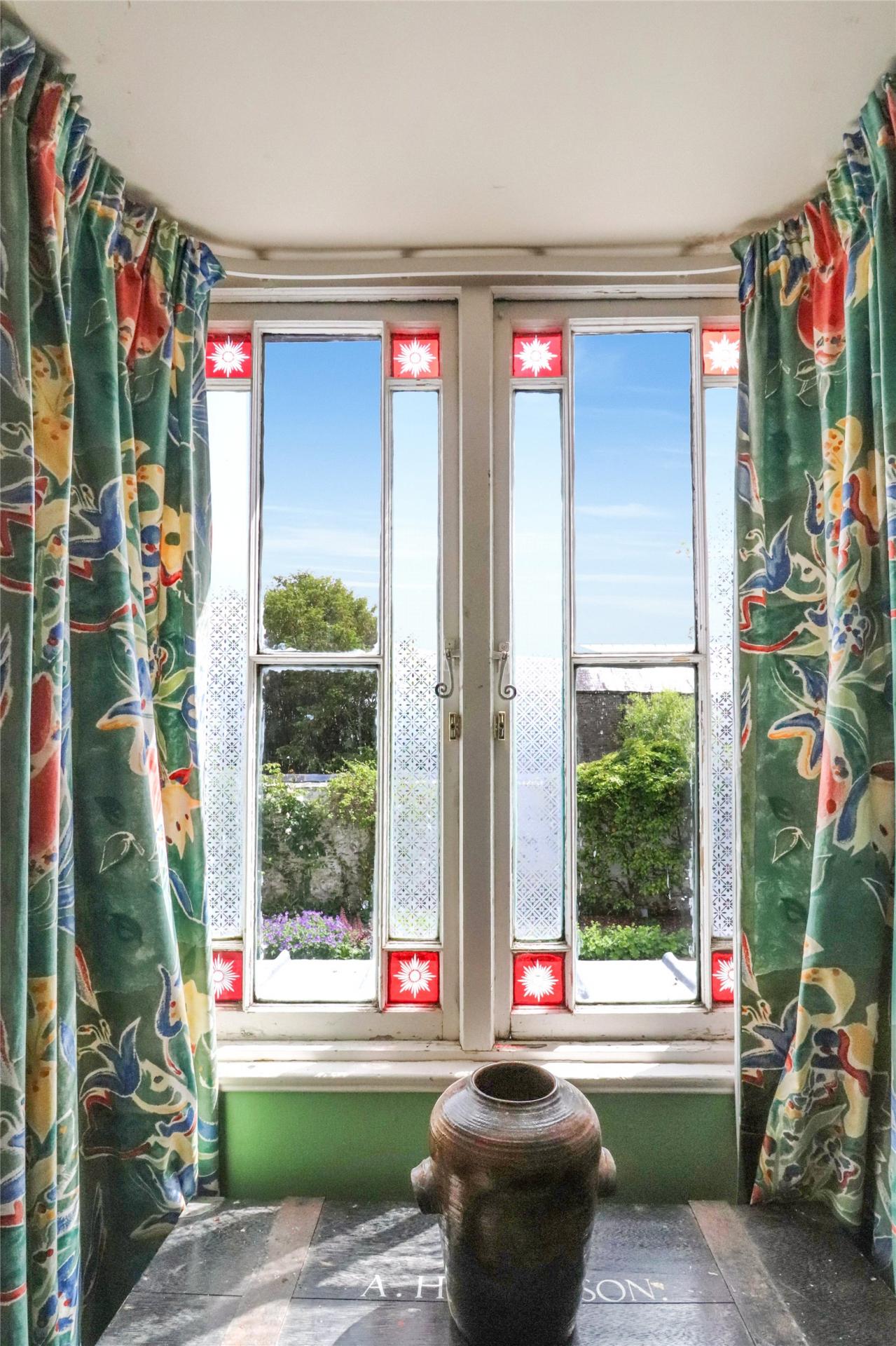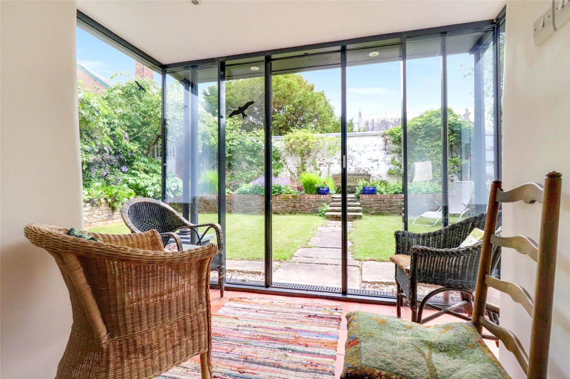 Accessed via a private gated path from North Walk through a well-stocked English country garden, the home immediately impresses with its glazed porch—thoughtfully extended in 2015 to provide a delightful indoor seating area. Original Victorian cast-iron supports remain in place—a nod to the house’s layered evolution over the centuries.