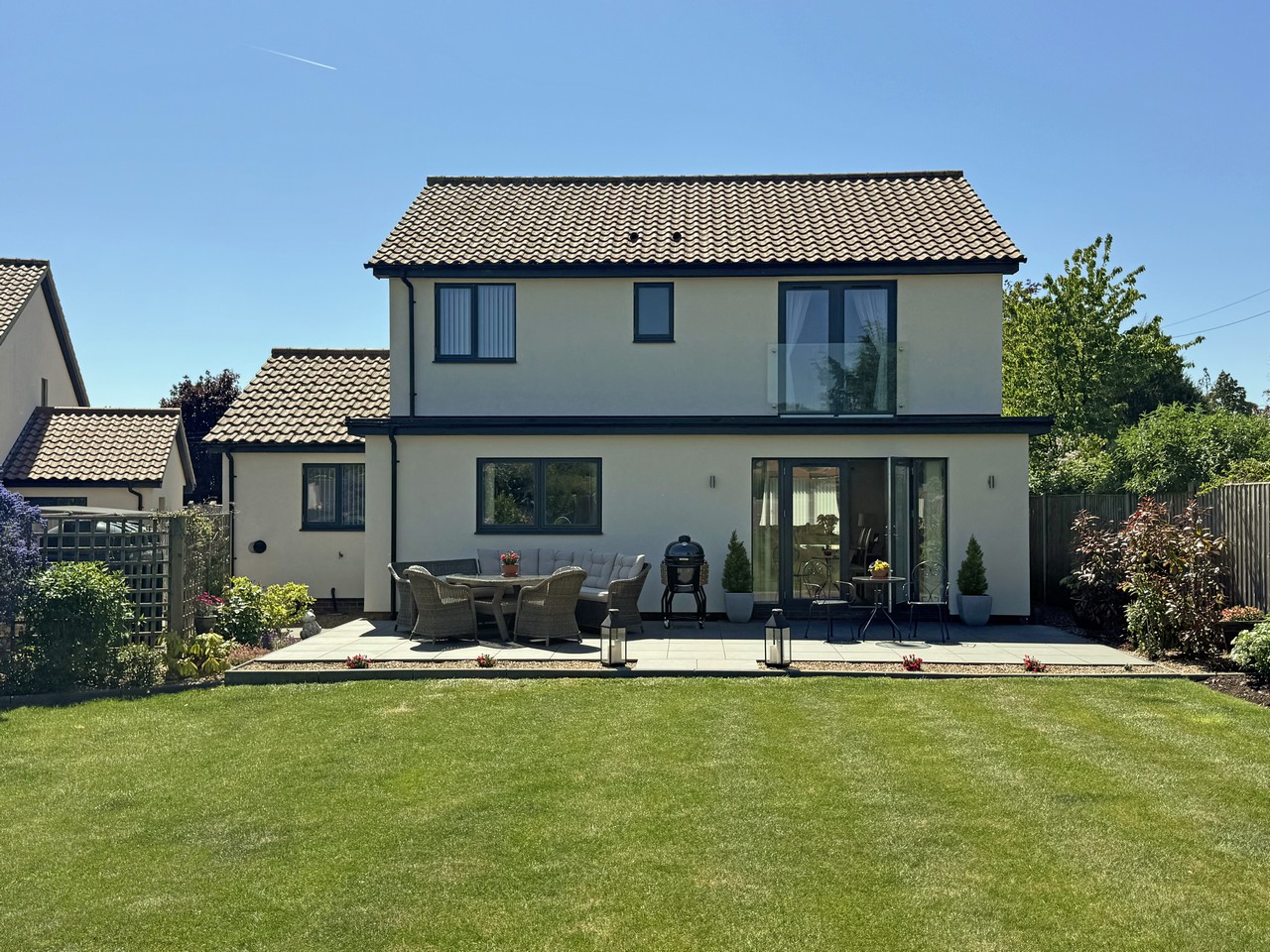 Stylish Modern Executive Style Home. Built just five years ago, this comfortable and extremely well-appointed four-bedroom timber framed home offers everything the family needs – plenty of living and sleeping space, a sunny secure garden with country views, a village location and ample off-street parking. Immaculately presented inside and out with nothing needing attention, you can arrive, unpack and crack on with enjoying the best of country life. EPC B