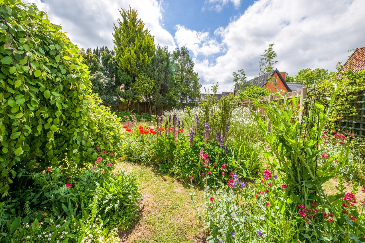 In an Engllish Country Garden. Welcome to The Good Life! With space for the family, views over the countryside common, a garden that offers grow your own and a wildlife haven, you can have it all here. With four bedrooms, and plenty of social space plus potential for multigenerational living and all close to town amenities and rail links, it is a rural dream!