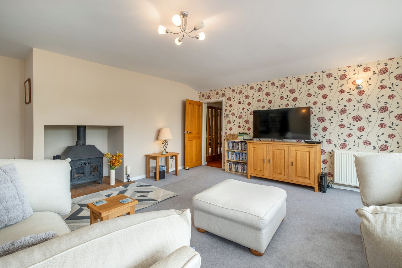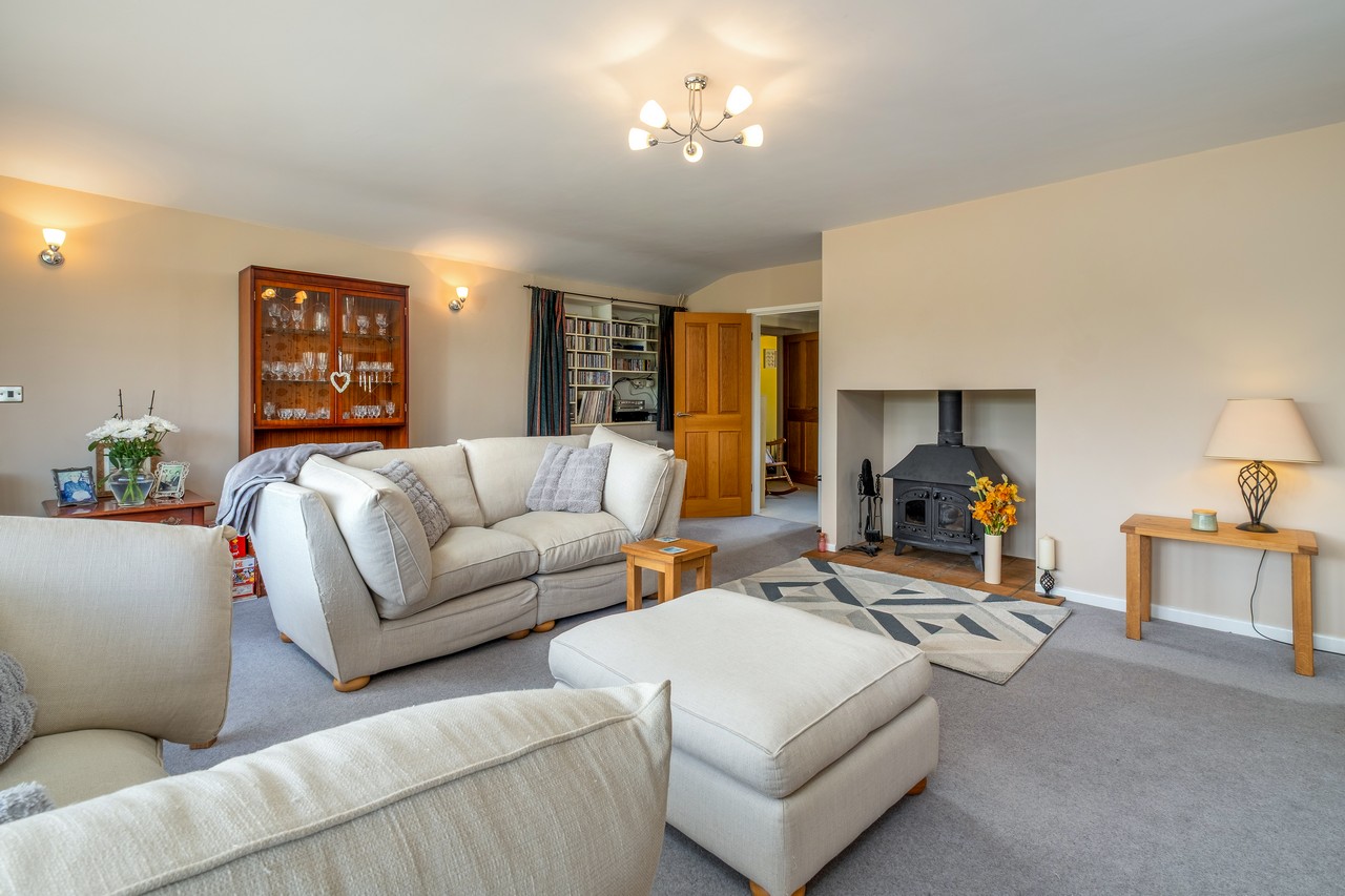 - A generous living room with wood burner